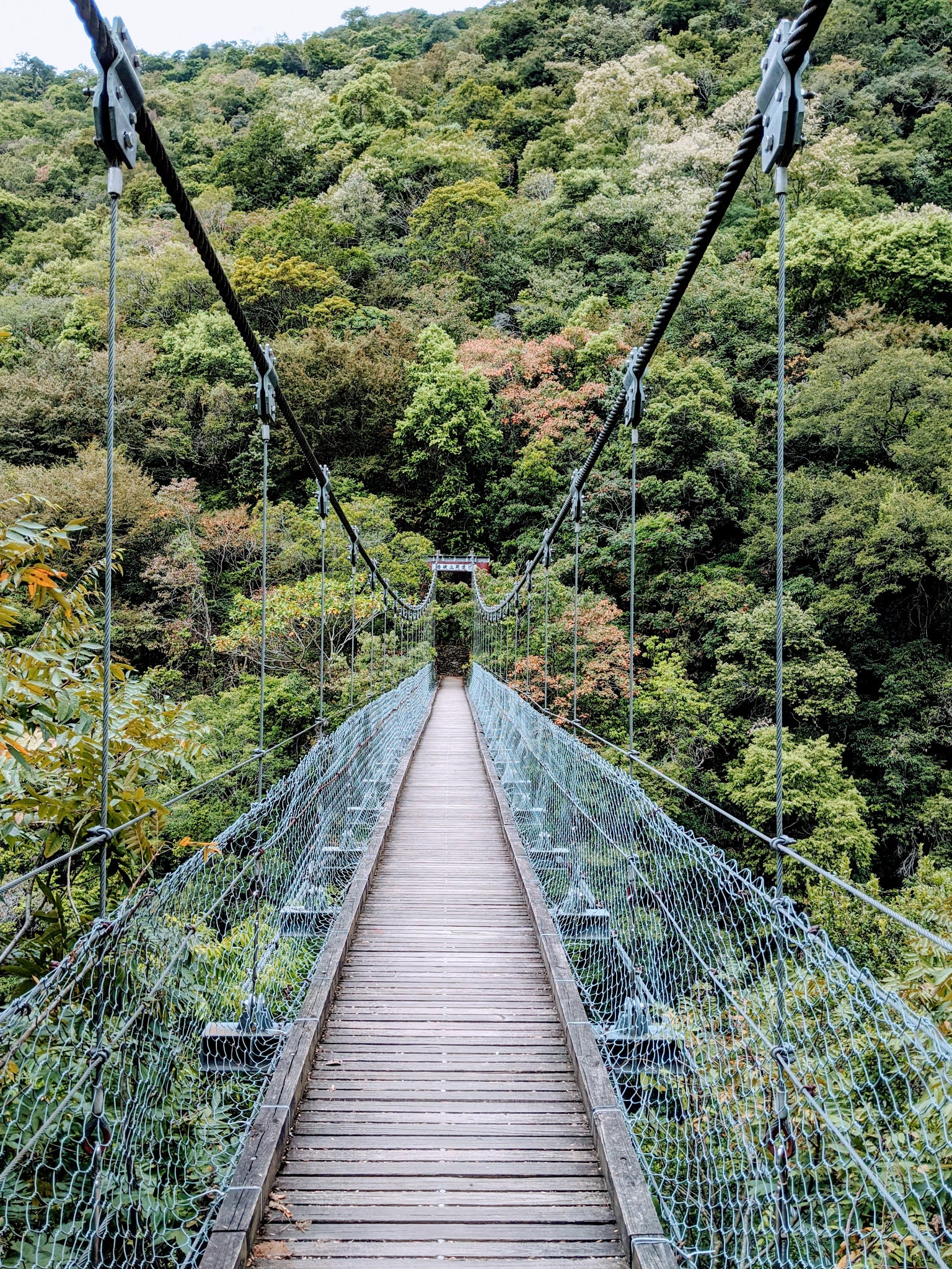 需先到收費亭進行報到程序,確認沒問題之後,工作人員會幫忙開門讓你進去,一開始就會是錐麓吊橋,走到中間左右兩邊的風景都非常的美。橋的右手邊看到是布洛灣山月吊橋。