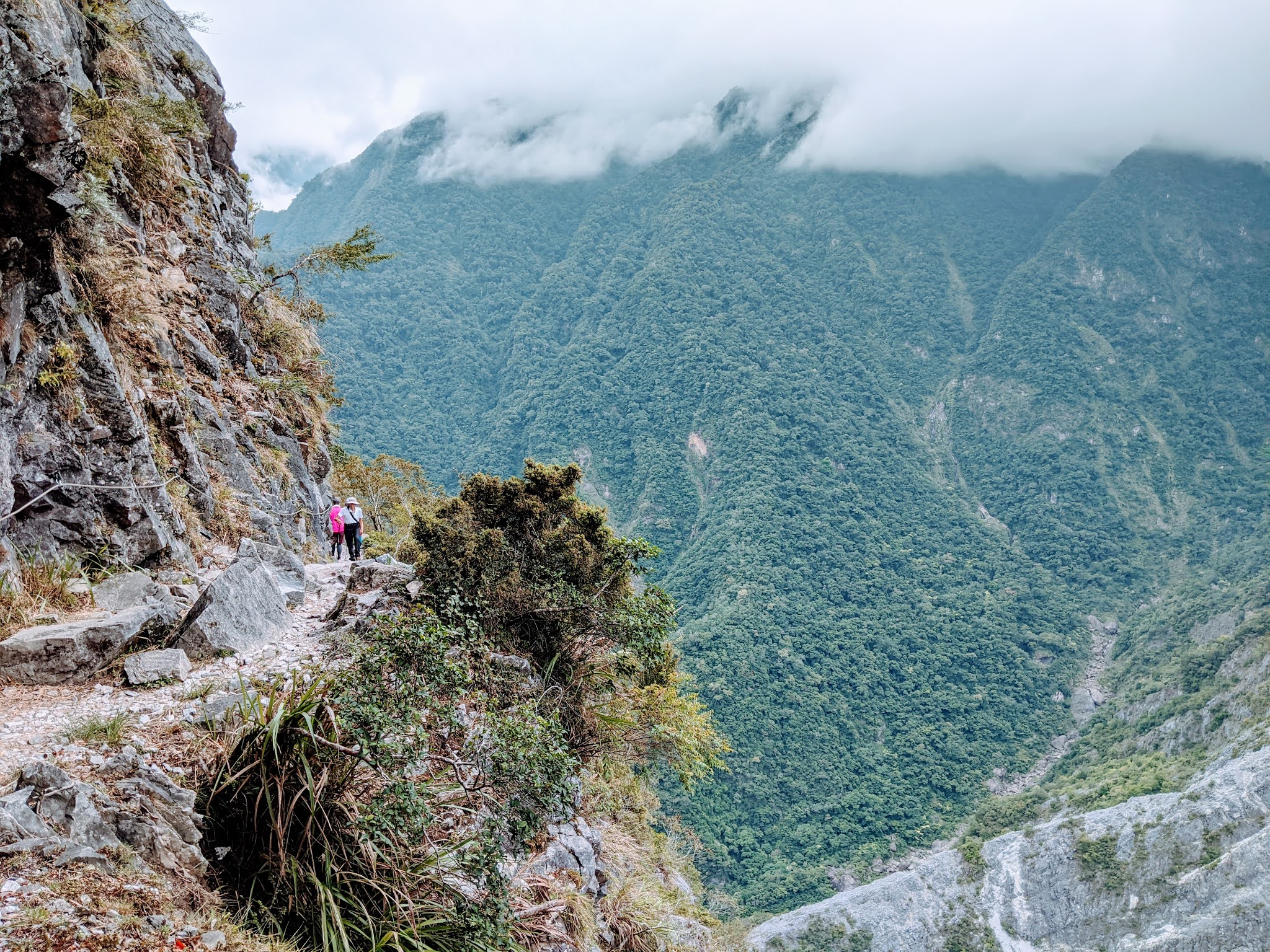 吃飽後短暫休息一下就直接走回程了,因為當天還要開車到宜蘭礁溪的飯店,12點半出發,儘管途中沒拍照又下坡,但我這次穿平底鞋,下坡路段走得比較慢,深怕一滑就掰了,約莫2點回到燕子口。從燕子口走回停車的地方也很適合拍照,但早上很多跟團遊客,建議回程再拍。