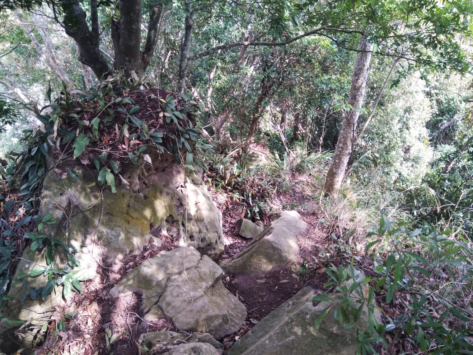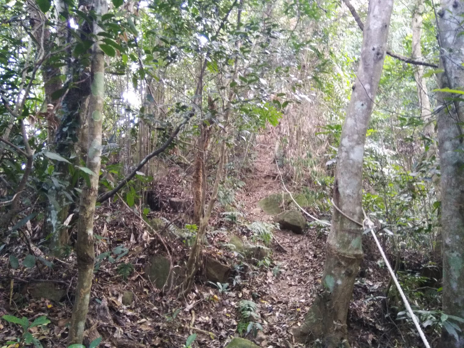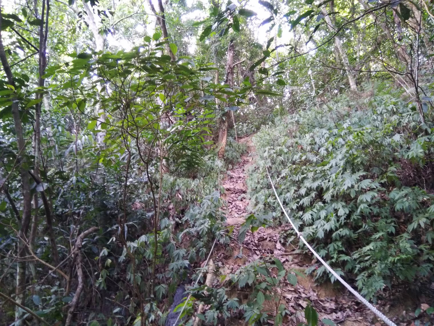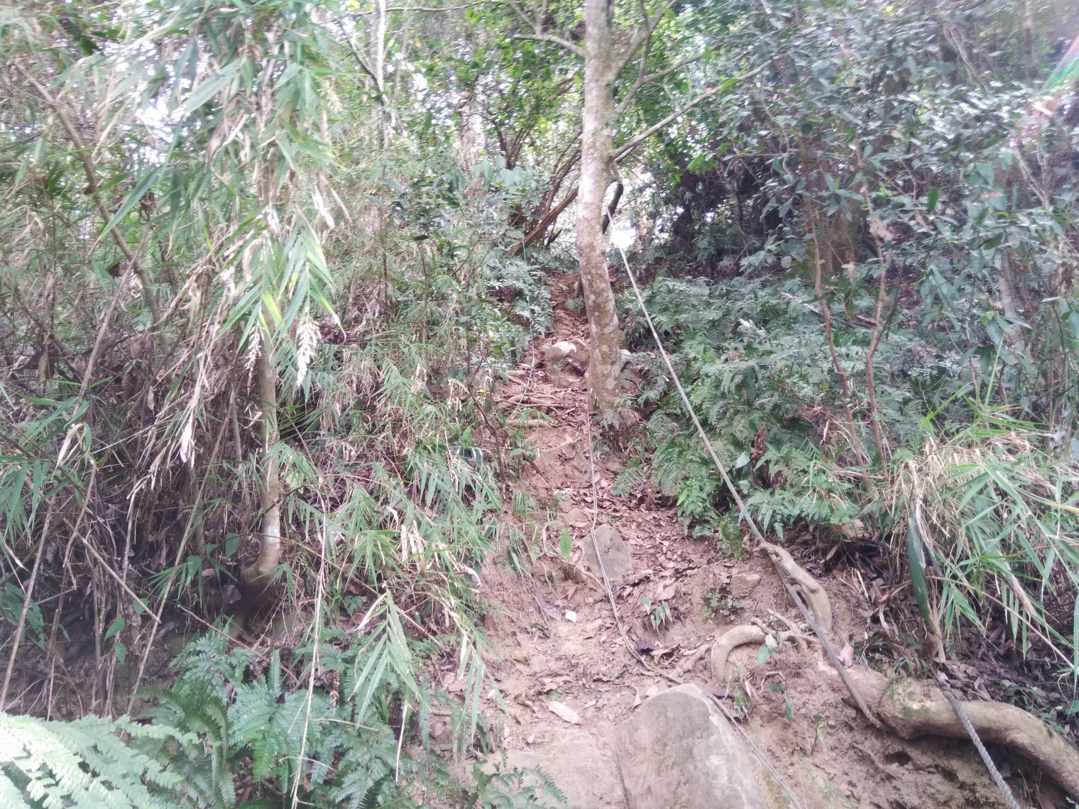 PS. 後來運氣好撿到一根堅固的竹竿充作登山杖,對於既滑又沒施力點的陡坡路段很有幫助,只能說以後還是乖乖帶登山杖比較保險!