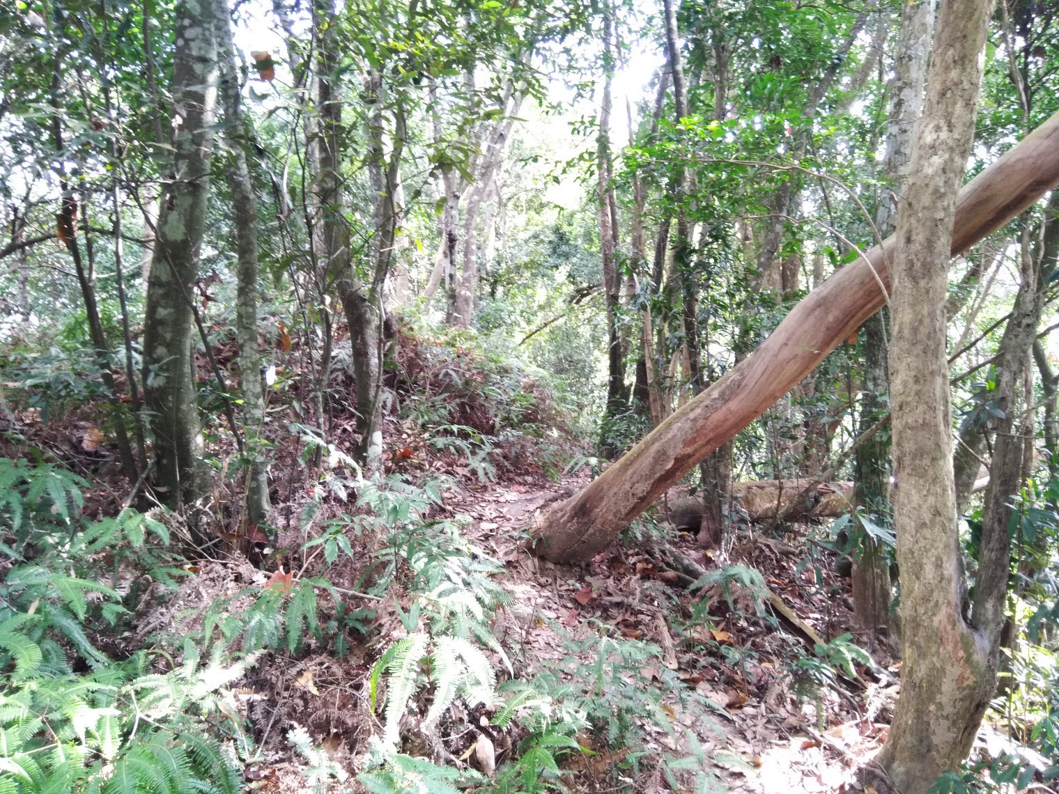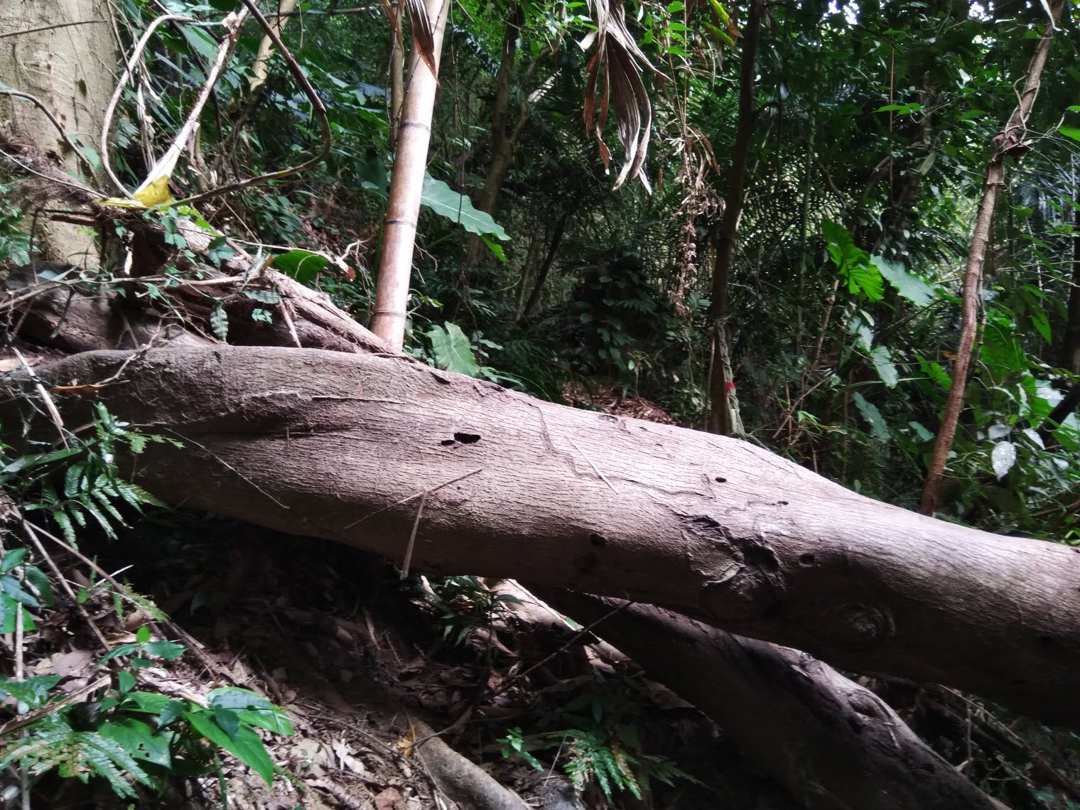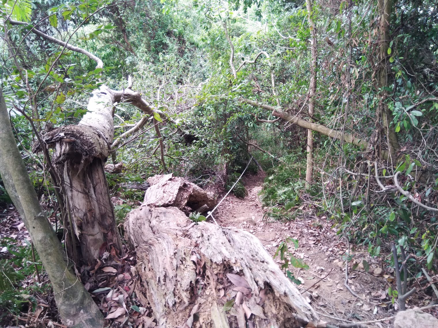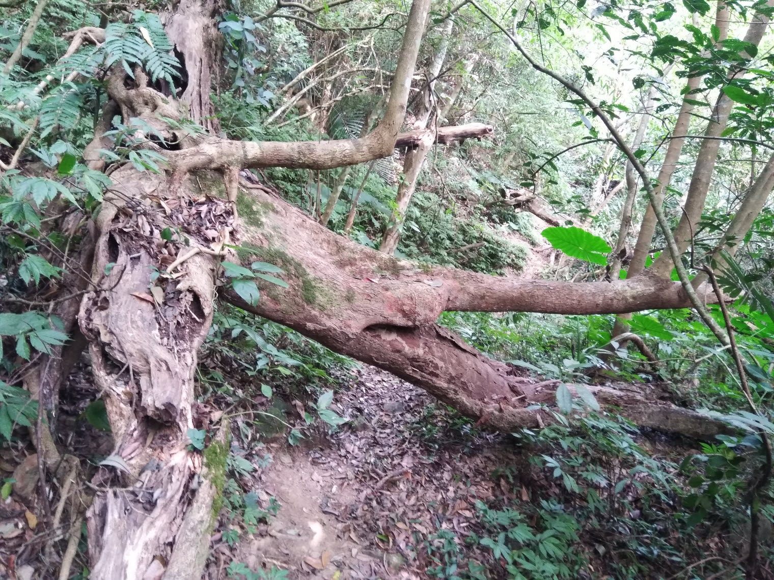還記得在前方的倒木躊躇一會兒,因為無法一腳跨過去,但要踏上去又感覺不穩固