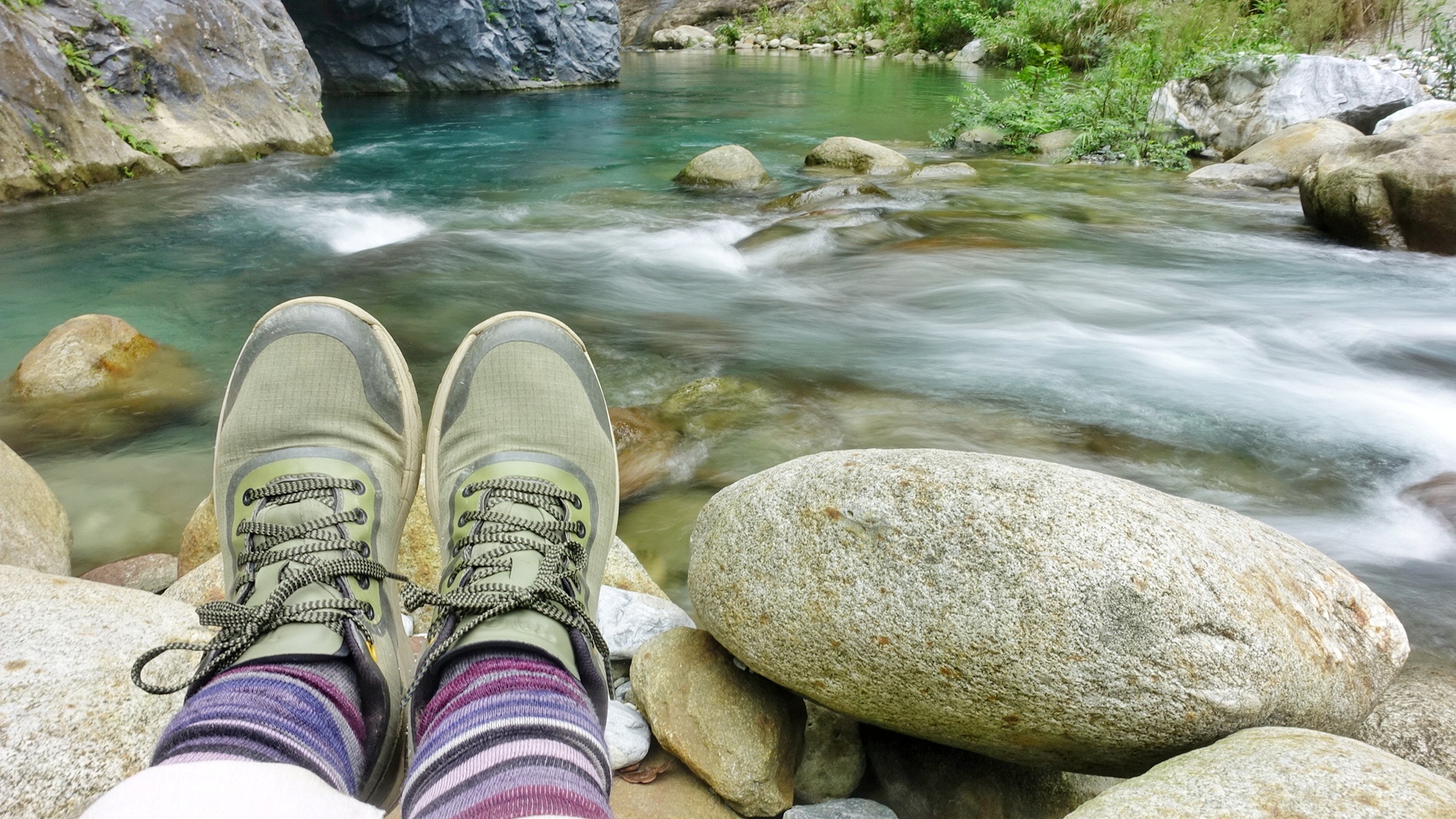 進水濂洞時我沒有脫鞋,鞋子被水淋濕了,但走回天祥時,鞋子也就乾了,雖然它的表布只有設計防潑水,但表布很輕薄、速乾,就算在戶外淋濕,也可以很快變乾爽,不用害怕要穿著濕鞋子一整天,對於一天的郊山行程、輕旅行就很足夠了。