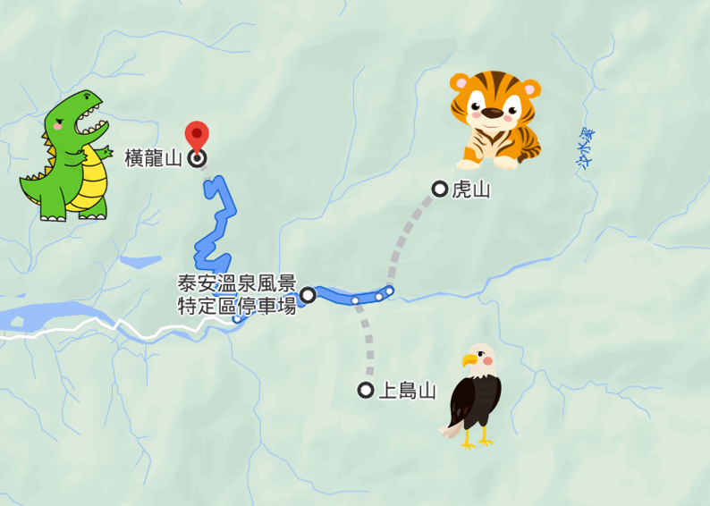 鳥嘴山入口在從泰安溫泉停車場往警光山莊的方向