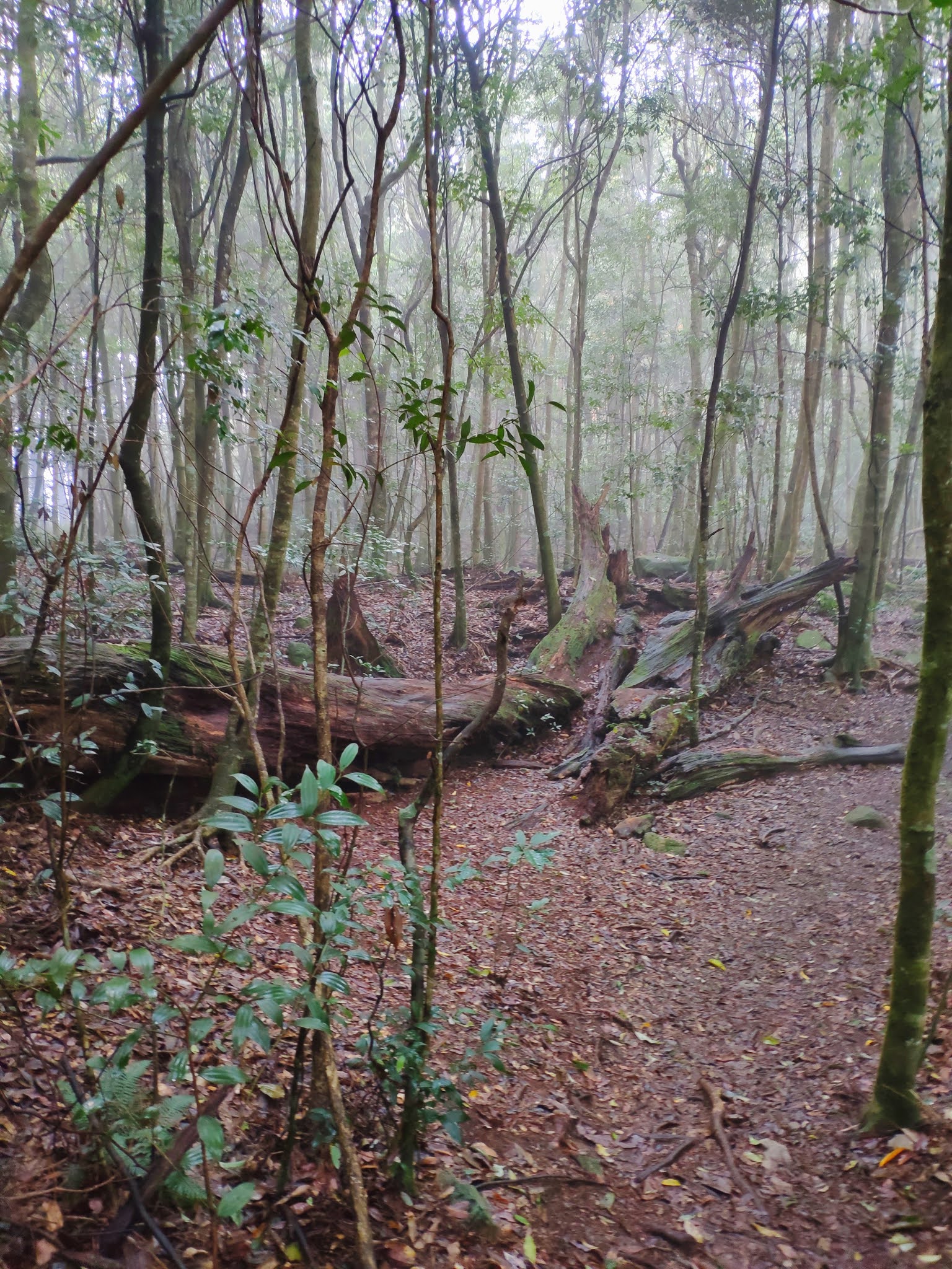 因為飯店訂在谷關,所以第一天先去屋我尾山,從大雪山林道31.2k處附近停車,直接下切到屋我尾山的三角點,此路線較為輕鬆,也平易近人,大約花費2.5小時左右。攻完第一座谷關七雄之後,信心大增,準備開車前往谷關裡冷部落,挑戰谷關七雄老么──唐麻丹山。
