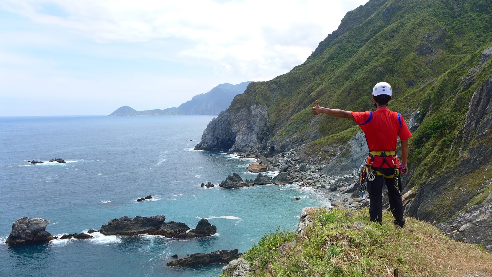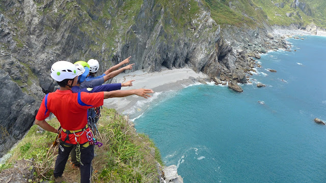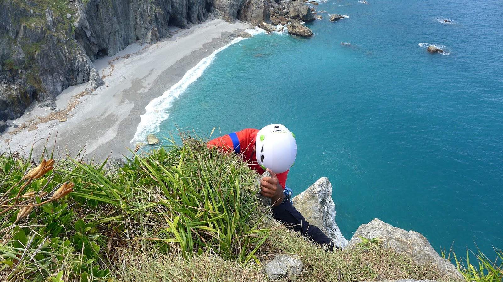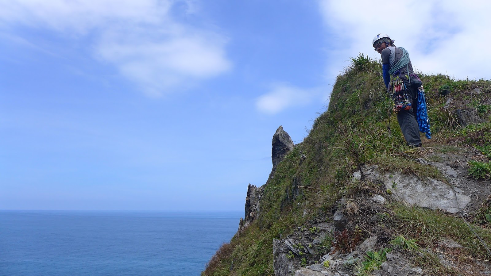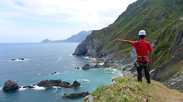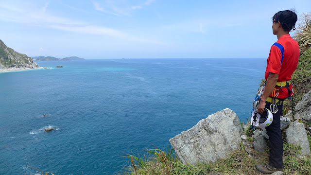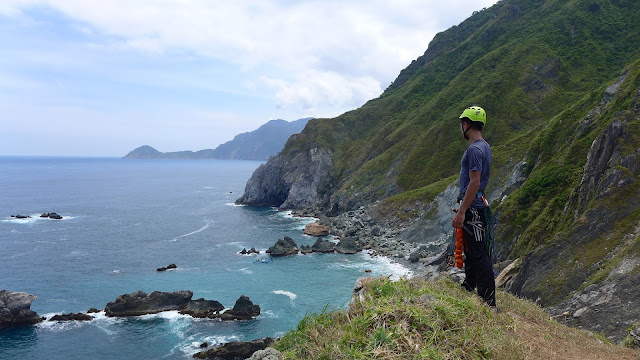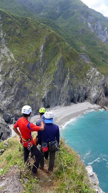 還是垂降好了,留繩避免下午漲潮腰繞路無法走,上攀撤退用