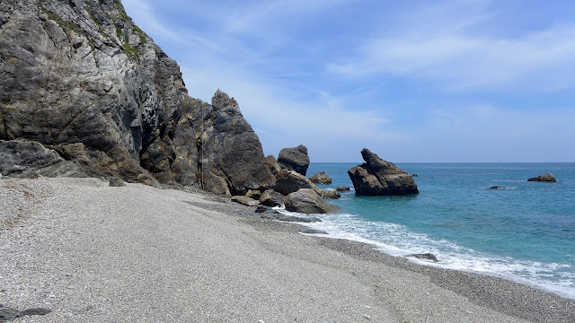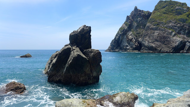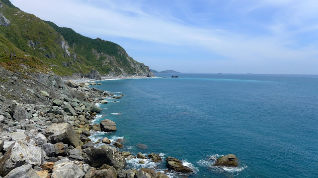 退回起攀處躲陰影休一會,繼續出發,目前還在退潮時間,所以浪不太會打到身體,不過偶爾還是會有1~2波較大的,自己算好時間,這邊直接繞算好踩好走,通過容易。