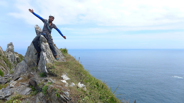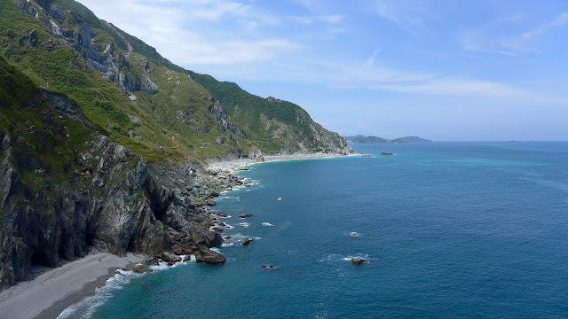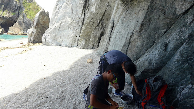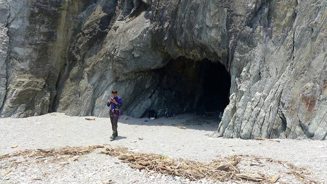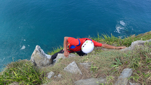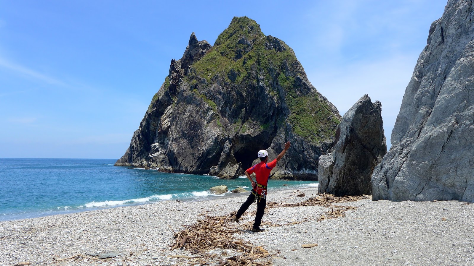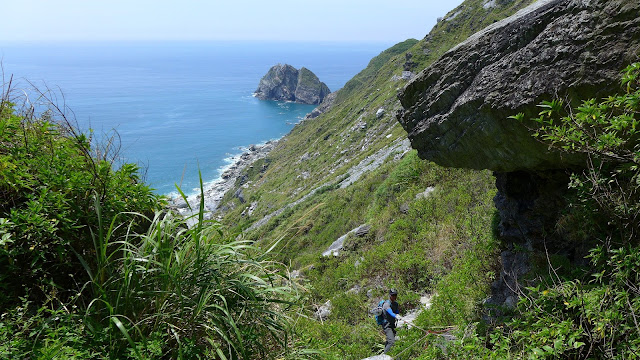 心心念念2年多的地方,終於在幾位朋友時間騰出來,一同前往,前一晚借宿郭寶家,隔天一早往下切點,烏岩角去的方式很多種,划獨木舟、坐船、步行,我們採取步行一日來回方式,背了大包小包裝備繩索等,於明隧道口整完裝,一開始就要下降近300M的落差到海灘。