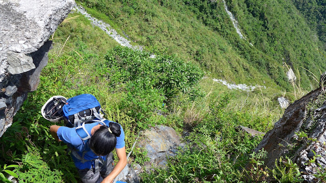 過這支立柱,再來的路更刺激了,滑滑滑的碎石坡,每個人之間都要稍拉點距離以策安全,這裡一踩整個碎石都會往下稍滑動,每一步都要注意。