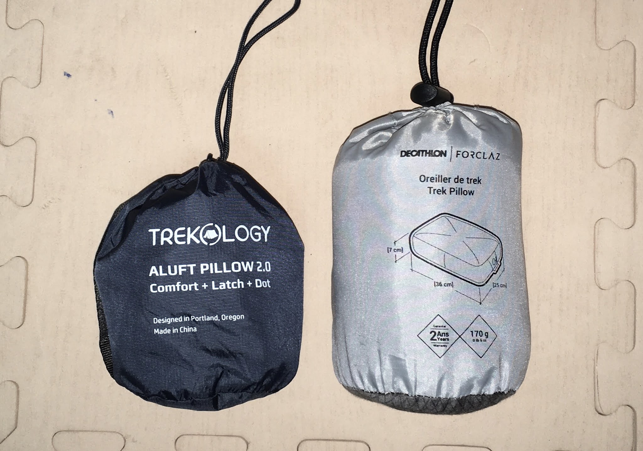 在輕量化的世界裡,枕頭通常不是必備的裝備,但是如果有一顆舒適的枕頭,可以在戶外睡得更安穩,重量也不算太重的話,在十天以內的行程我想都算得上是甜蜜的負擔,這篇文章就來比較Trekology Aluft 2.0 和 迪卡儂Forclaz兩個充氣枕頭的特色跟優缺點,底下就以品牌名迪卡儂和Trekology來稱乎兩個枕頭,不使用產品型號。