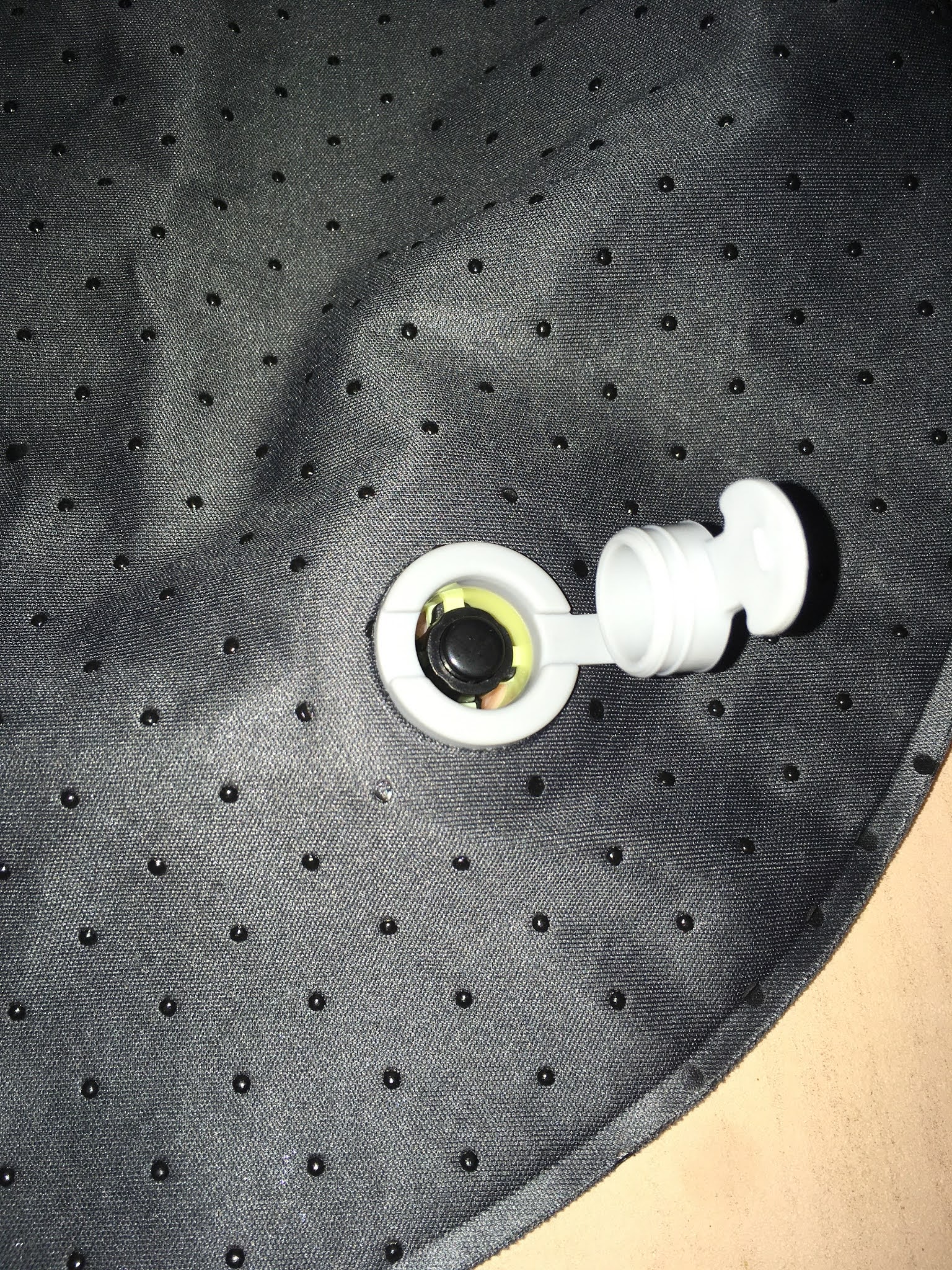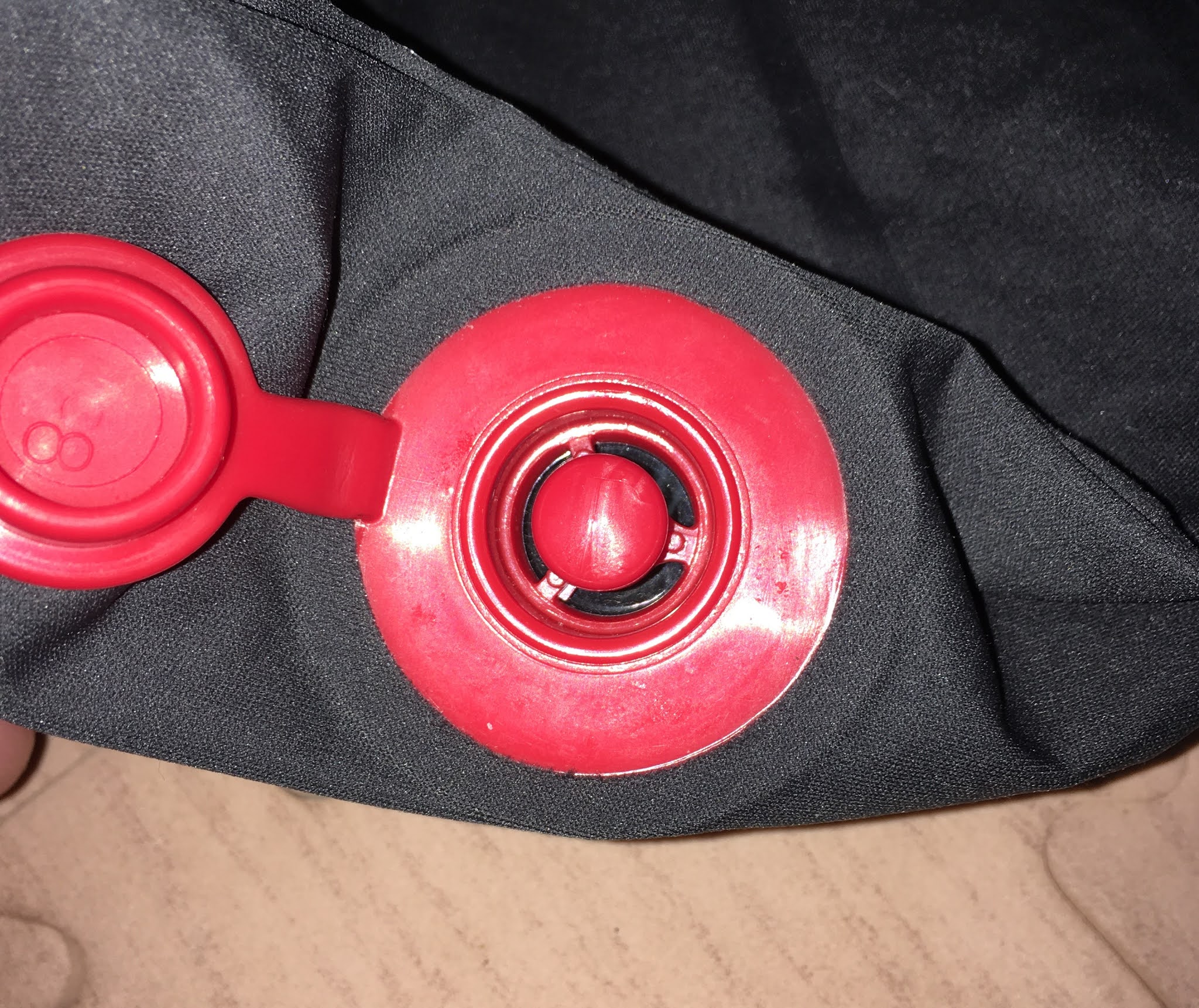 比較兩者吹嘴的部分,Trekology的吹嘴採用按壓鈕的設計,圖中黑色的按鈕壓下的話氣閥打開,可以進行充氣或洩氣,壓上的話氣閥關閉,氣體就保留在枕頭裡面,等充氣完成再套上塑膠套避免漏氣。迪卡儂的設計就不太相同,雖然中間都有一個像是按鈕的東西,不過迪卡儂的按鈕有彈簧支撐,一般氣閥都是關閉的狀態,在充氣時直接用嘴吹氣,吹氣的力量會讓氣閥打開讓氣灌入,當要換氣呼吸的時候彈簧就會自動關閉氣閥不讓氣體外漏。在使用上迪卡儂的方便許多,也能夠將氣吹得比較飽滿,Trekology的設計當吹飽之後還要用手把按鈕壓上關閉氣閥,這中間就會讓氣體從枕頭中流出,無法真的充得很飽滿。但是在洩氣的時候Trekology就會變得比較方便,只要將按鈕壓下就可以開始洩氣,迪卡儂則需要一邊壓住按鈕一邊擠壓枕頭才能漏氣,不過充氣枕頭的洩氣並不會太花時間,所以我認為迪卡儂雖然在洩氣方面稍微輸一些但是影響並不大,兩者的洩氣速度並不會差異太多。