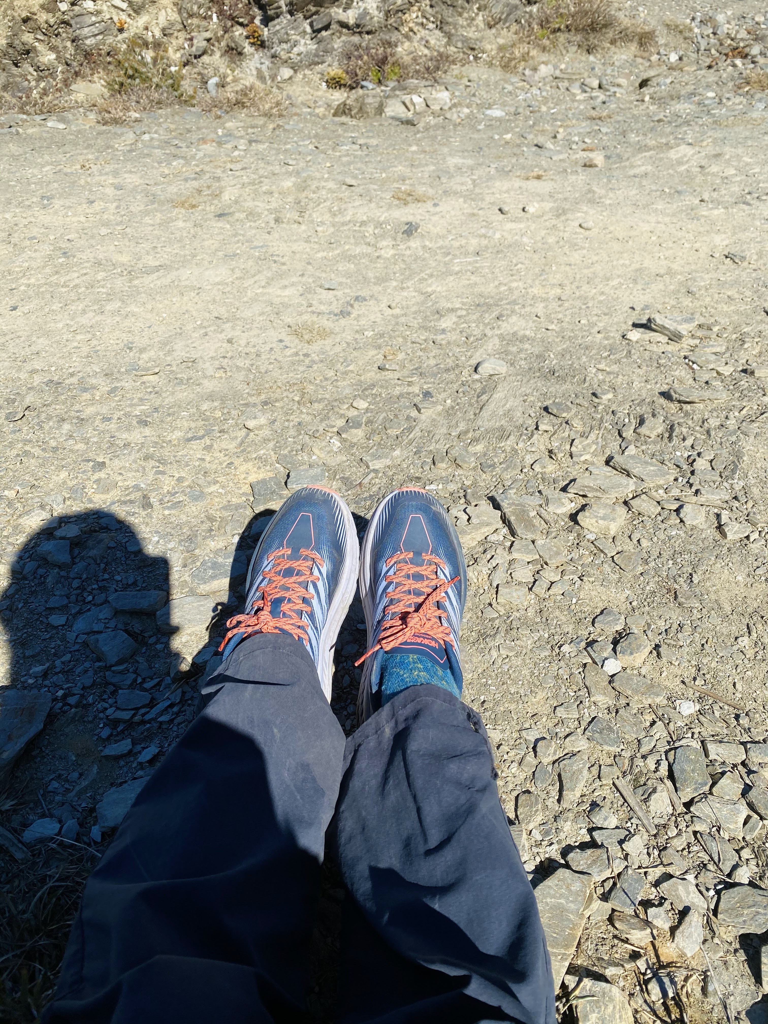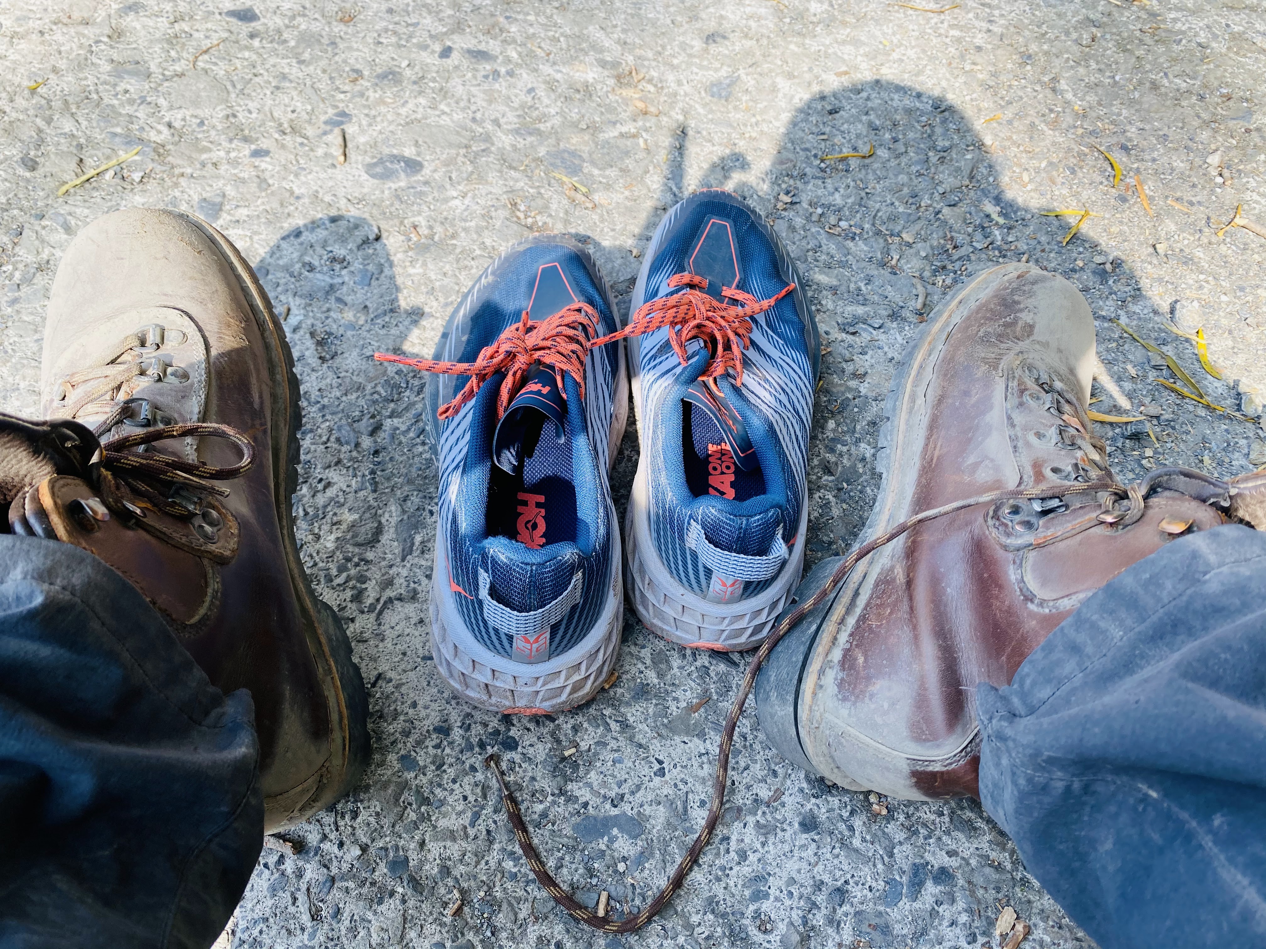 除了食物以外,穿著登山鞋,還帶了拖鞋跟跑鞋~
