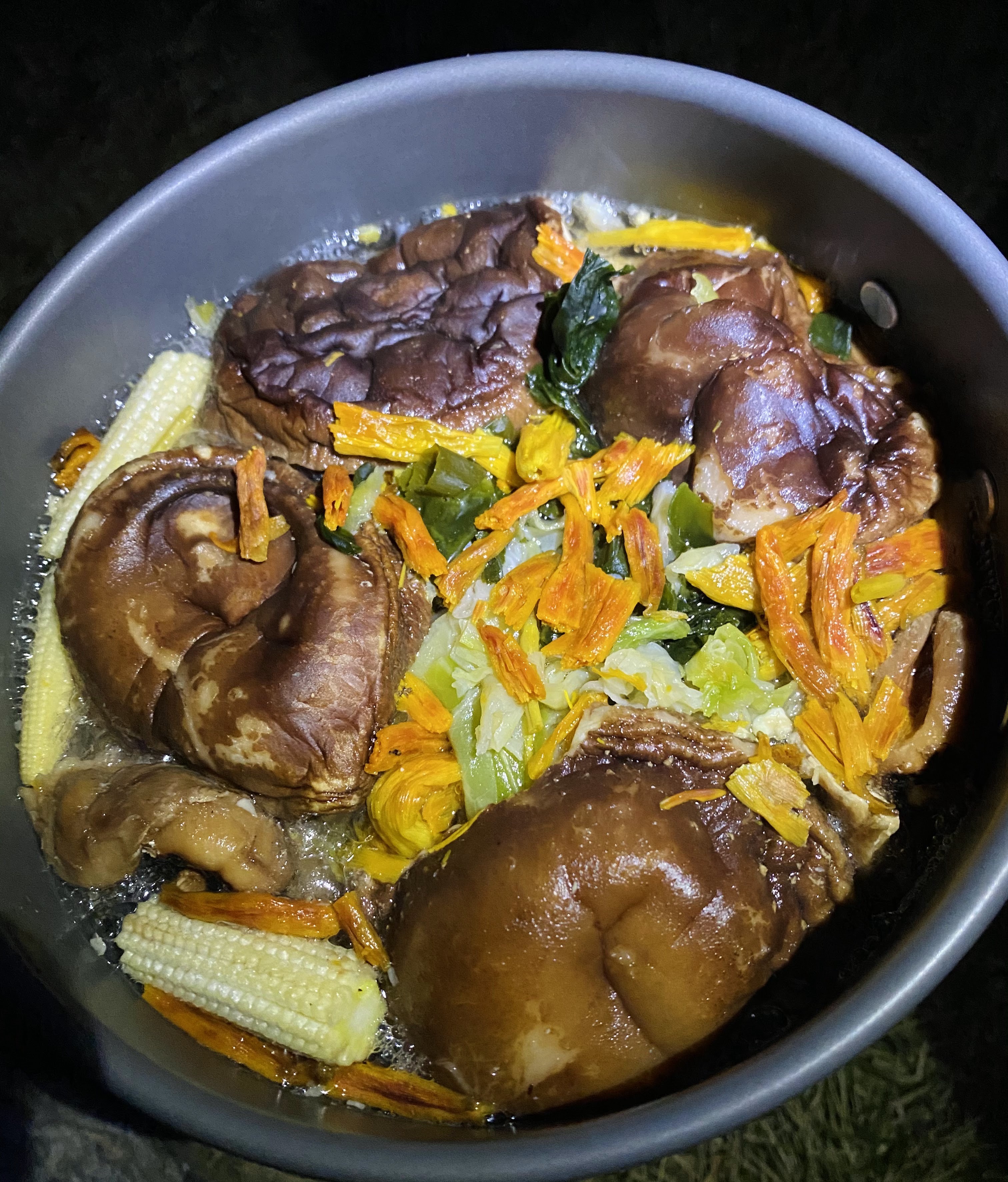 這次帶了很多乾燥蔬菜,乾燥高麗菜和紅蘿蔔、金針菇、海帶芽、椴木香菇,煮湯很豐富也很方便,營養兼顧,重點是輕😜口味好變化