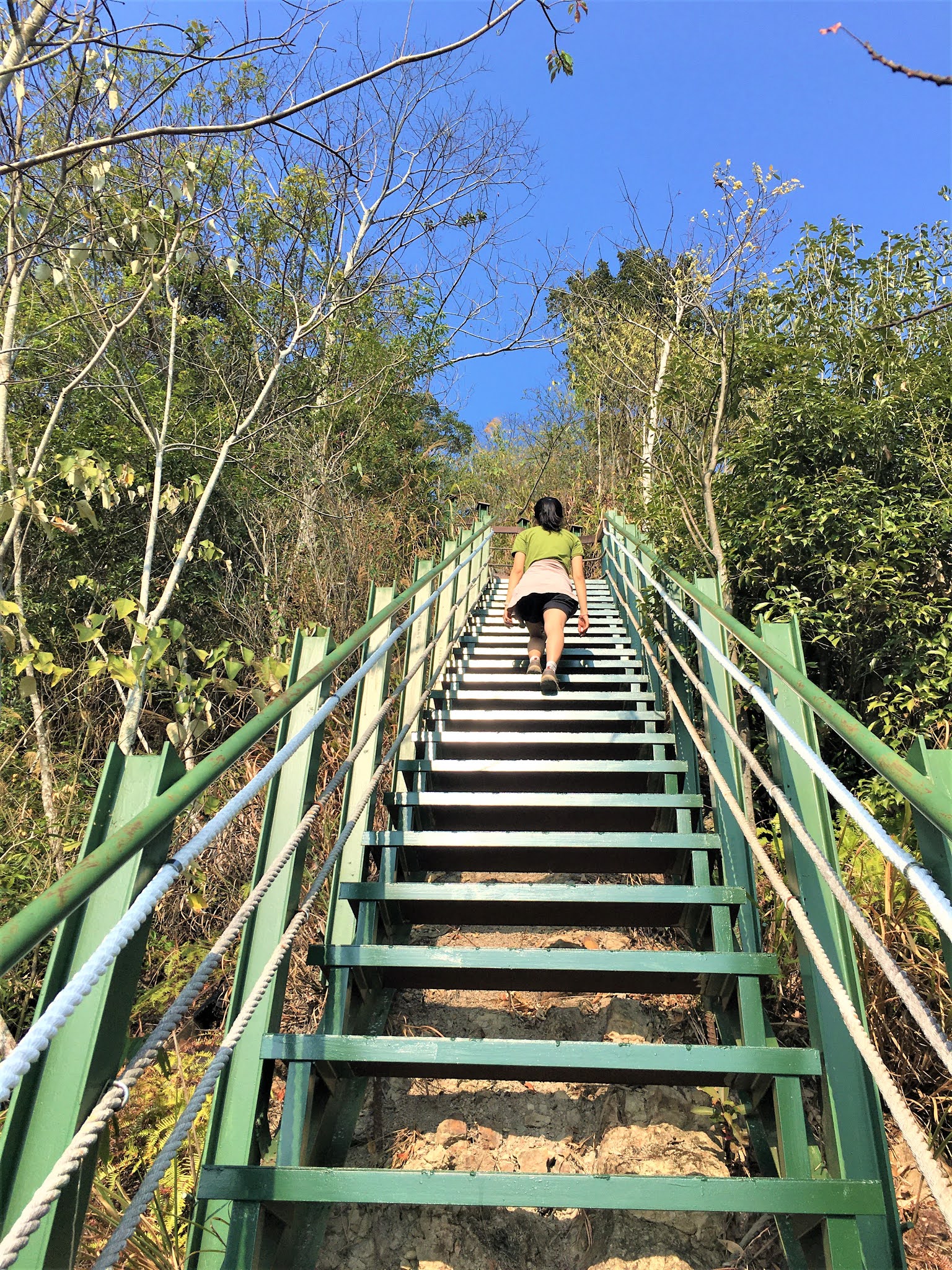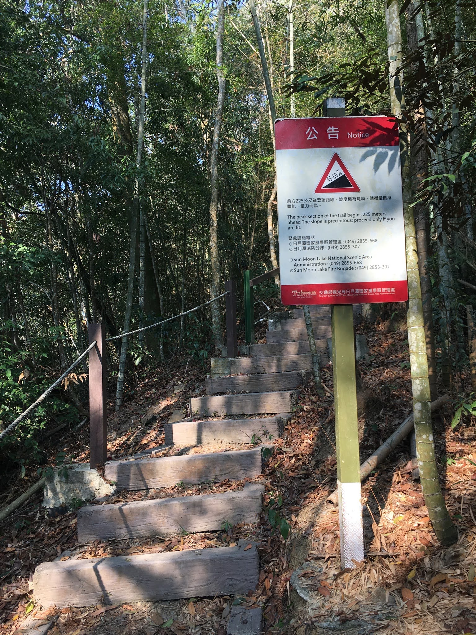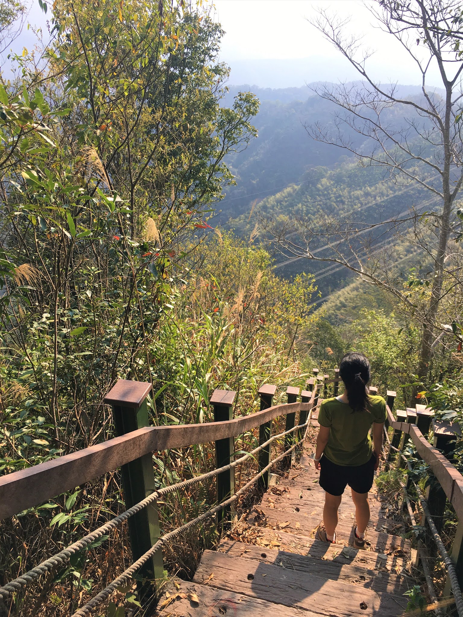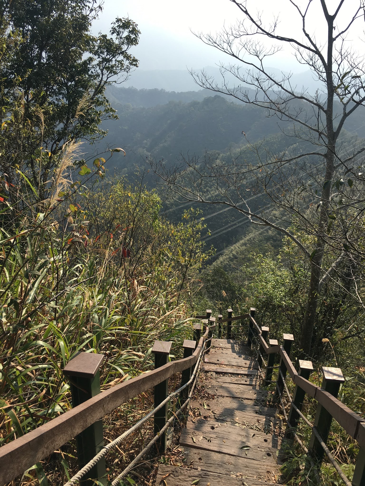 剛開始沿著產業道路往上走,之後會有石階步道,總共1公里。最後225公尺是最艱難的部分,陡度落在45~60度,只要咬緊牙關,就會順利抵達三角點。三角點在涼亭旁邊,不要錯過了!來回總共耗時約2小時。