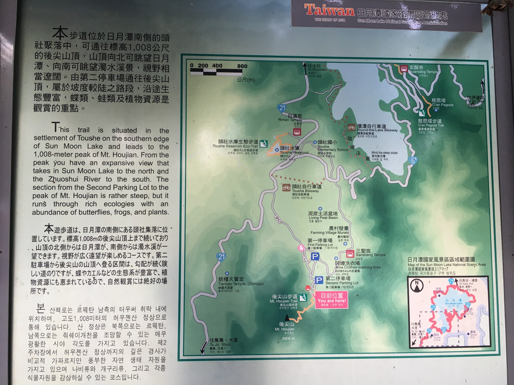 在二二八連假的第二天,打算造訪明潭四兄妹的三妹貓囒山和么妹後尖山。後尖山是魚池鄉最南端的山脈,也是頭社村的最高峰。可以先把車子停在後尖山第二停車場,有廁所可以使用,整裝之後就準備出發啦!