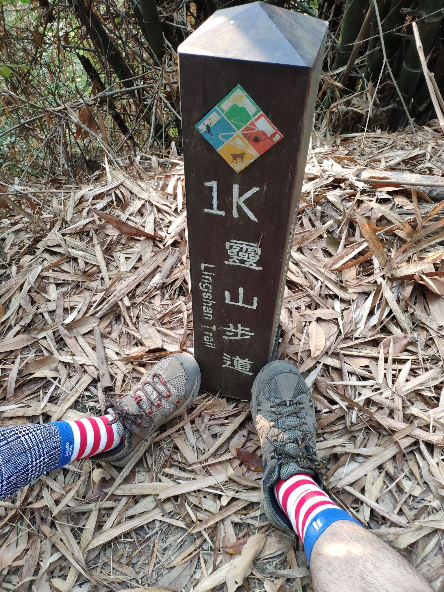 清明連假第三天,打算把旗靈縱走的靈山蒐集完畢。一早開車到雷音寺停車場,腹地非常大,可以容納數十輛車子。只耗費約40分鐘便抵達山頂,我和麻糬到了靈山山頂,以為往旗尾山的方向還有人頭山,便爬下死亡大峭壁,越爬越覺得苗頭不對,趕快上網爬文,發現原來靈山就是人頭山,趕快再度爬上死亡大峭壁,準備回程。這個峭壁的陡度算是旗靈縱走整段最陡的,感覺有70-80度,幾乎垂直向上,歷經鳶嘴山和五寮尖的訓練,這種難度還算可接受,但也是挺累人的,好險只有一小段。下山之後,一群獼猴在登山口處休憩,有好幾隻小獼猴在樹林間盪來盪去,觀賞前來登山的山友。