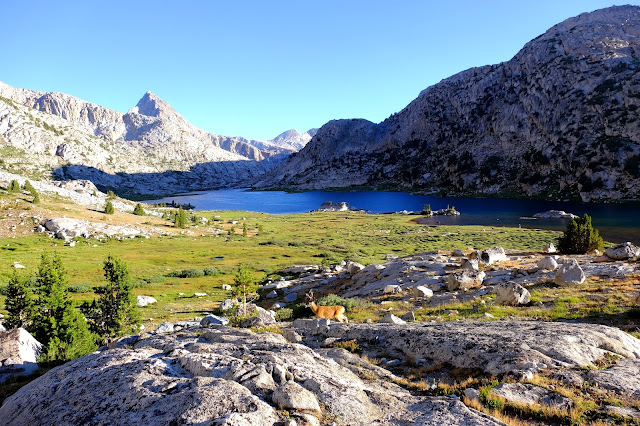 ↑ 在JMT看見鹿已經不是稀奇的事情,這頭鹿的棲息地就在湖邊離我們很近的位置。
