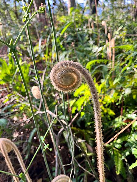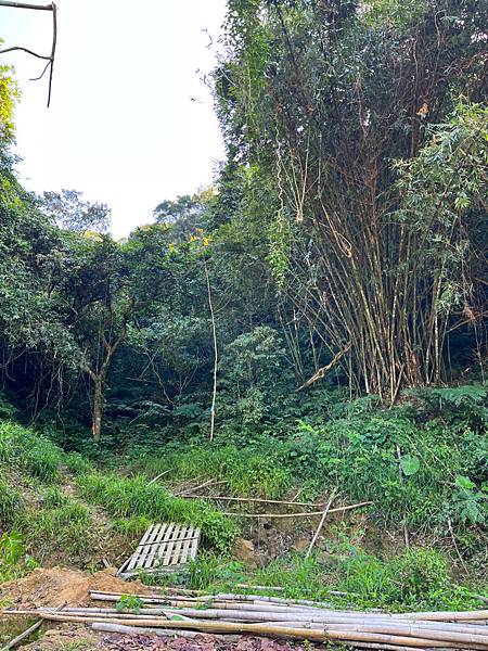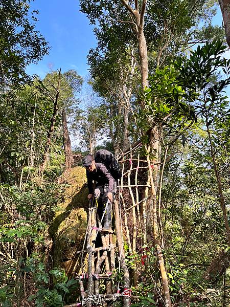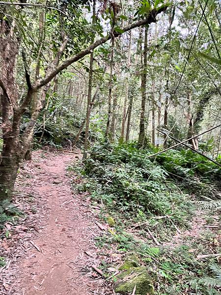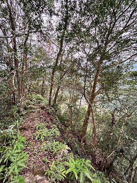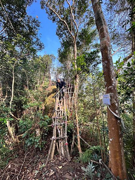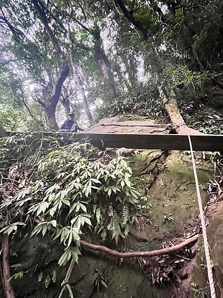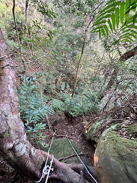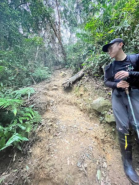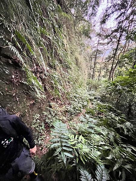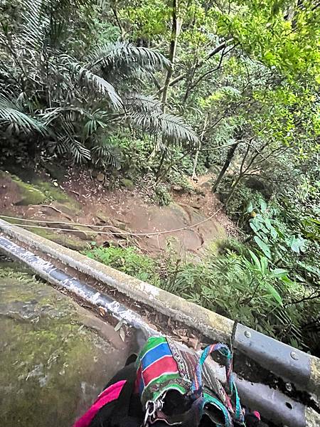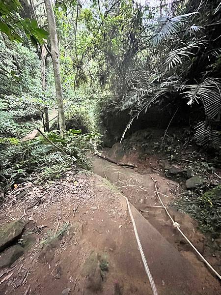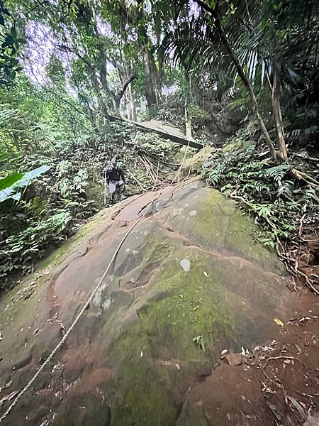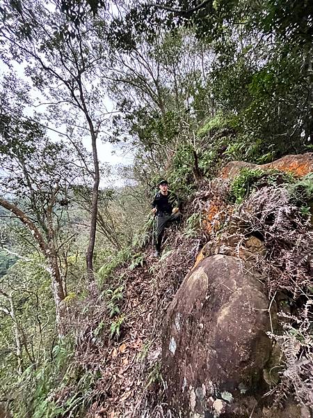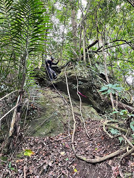 石牛山後往溪溝路線下山,路徑都是濕滑的土壤,有前輩們架設的輔助設施,但前段也因地形落差較大非常的有趣,好像溯溪抱石一樣