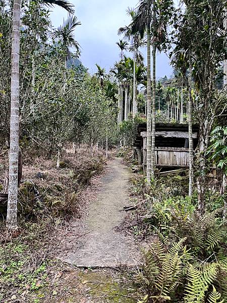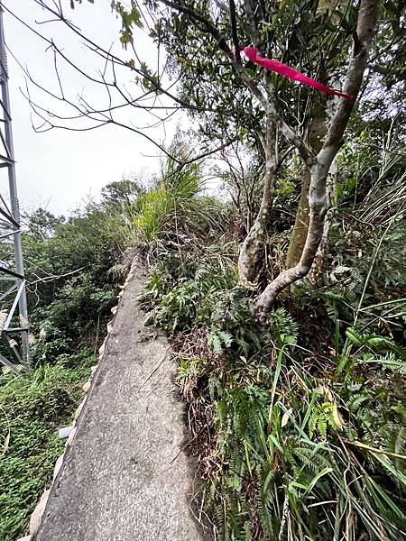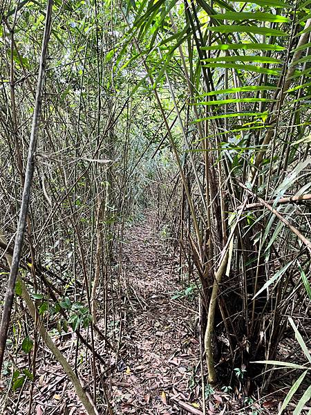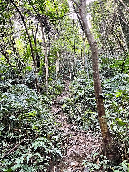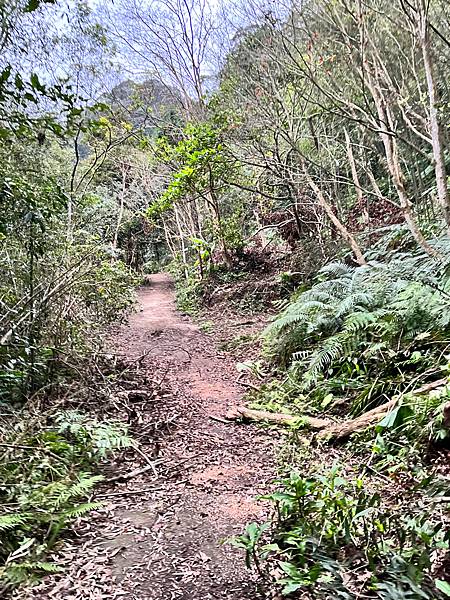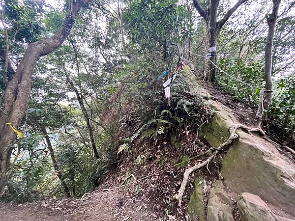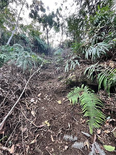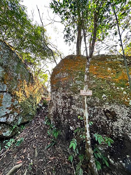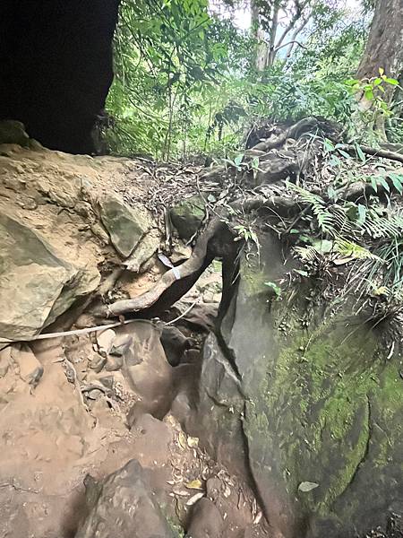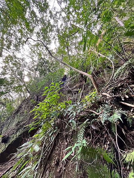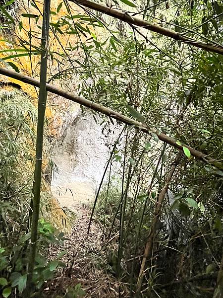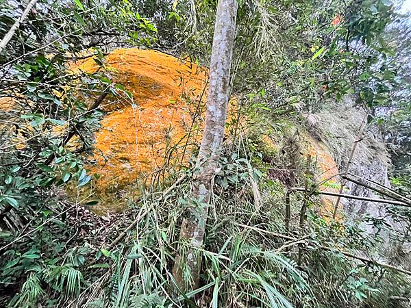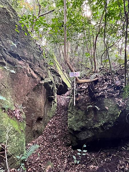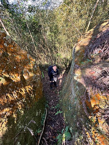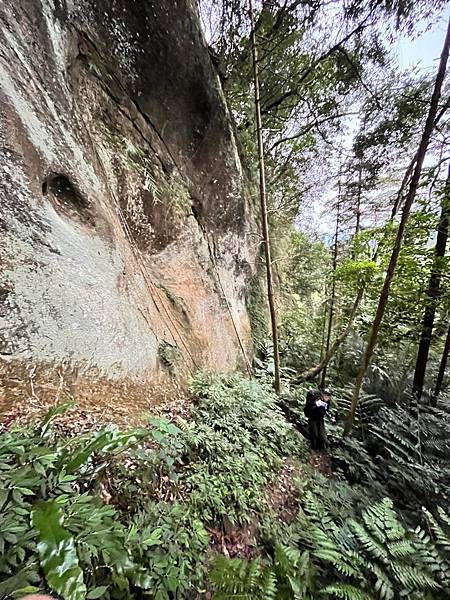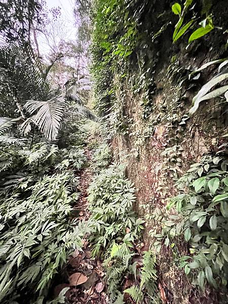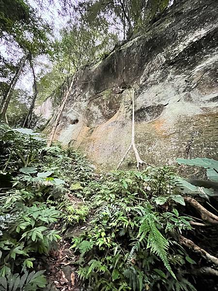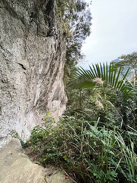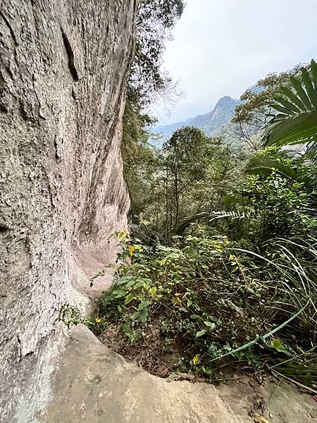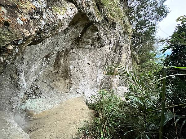 產道後接回山徑上坡,右側為整片的大岩壁,續上行