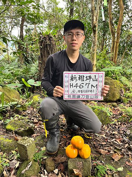 新柑坪山467M.總督府圖根補點;擺橘子出來拍照,但還有柑平山,所以我們橘子就留到柑坪山後才吃
