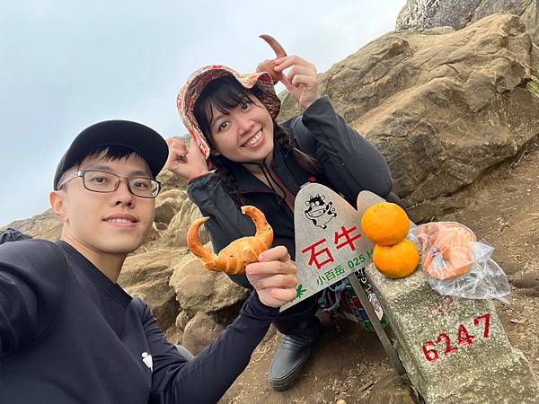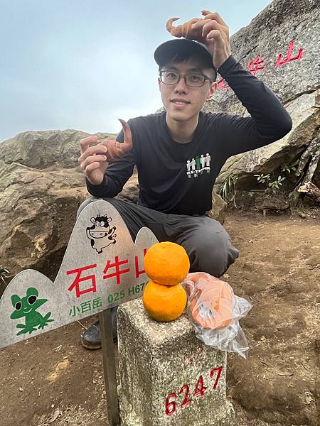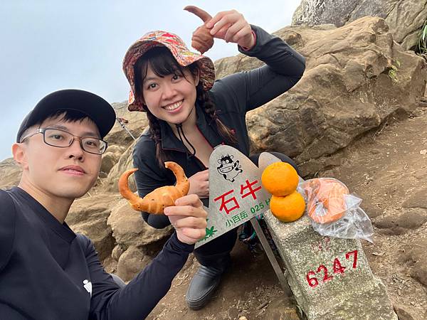 石牛山671M.三等三角點6247;隔天要爬牛牛橘子,因為自己說要帶牛相關物品,便拿出了前晚在十分老街買的牛角麵包XDD