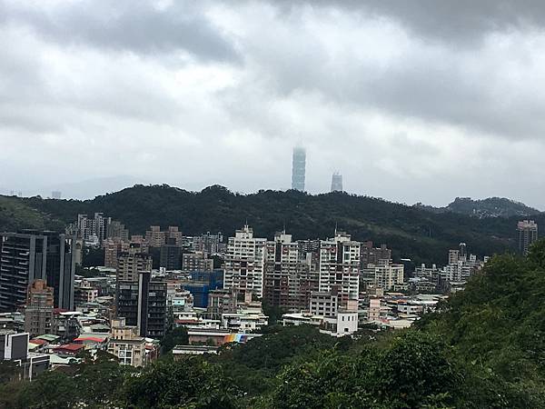 慈善亭,被雲霧遮住的台北101
