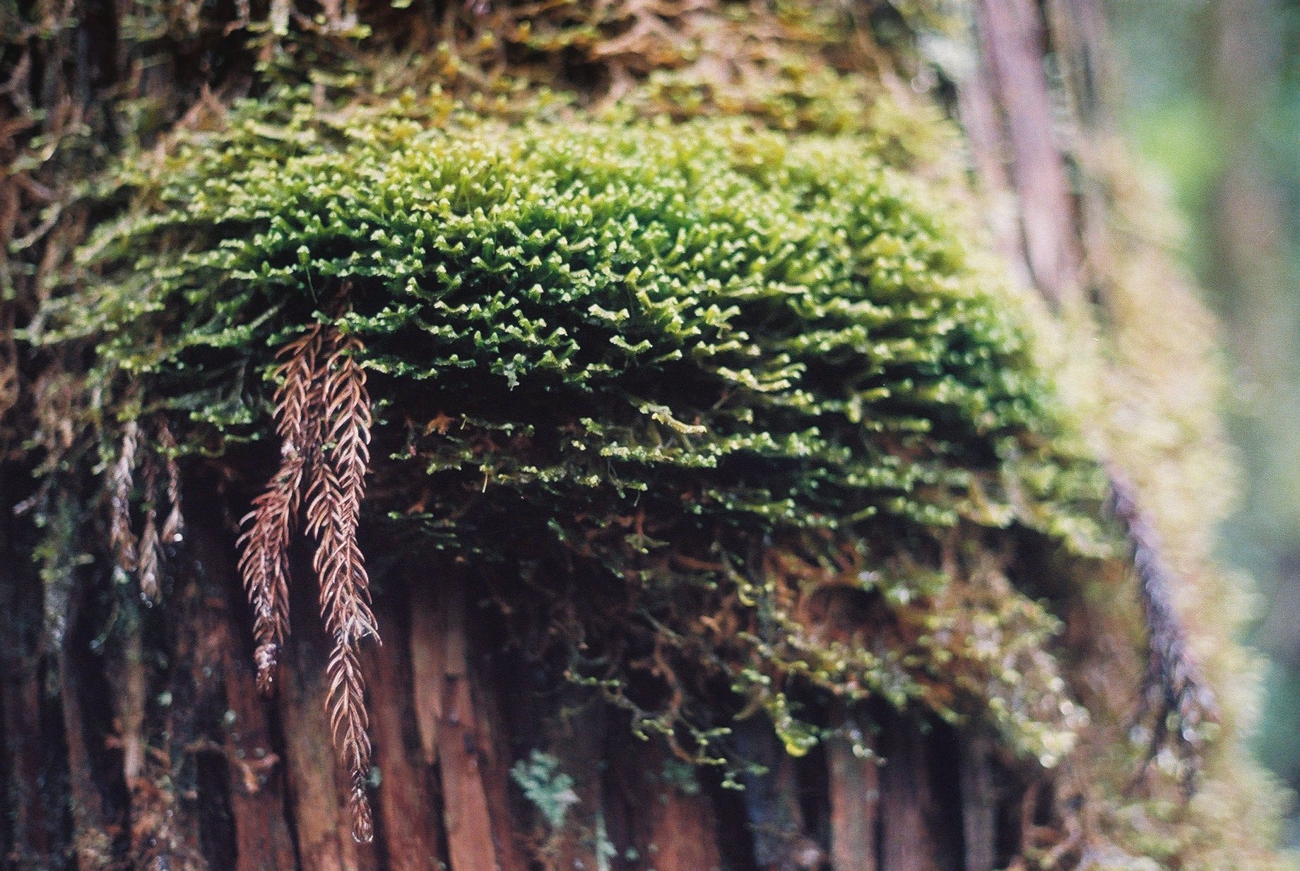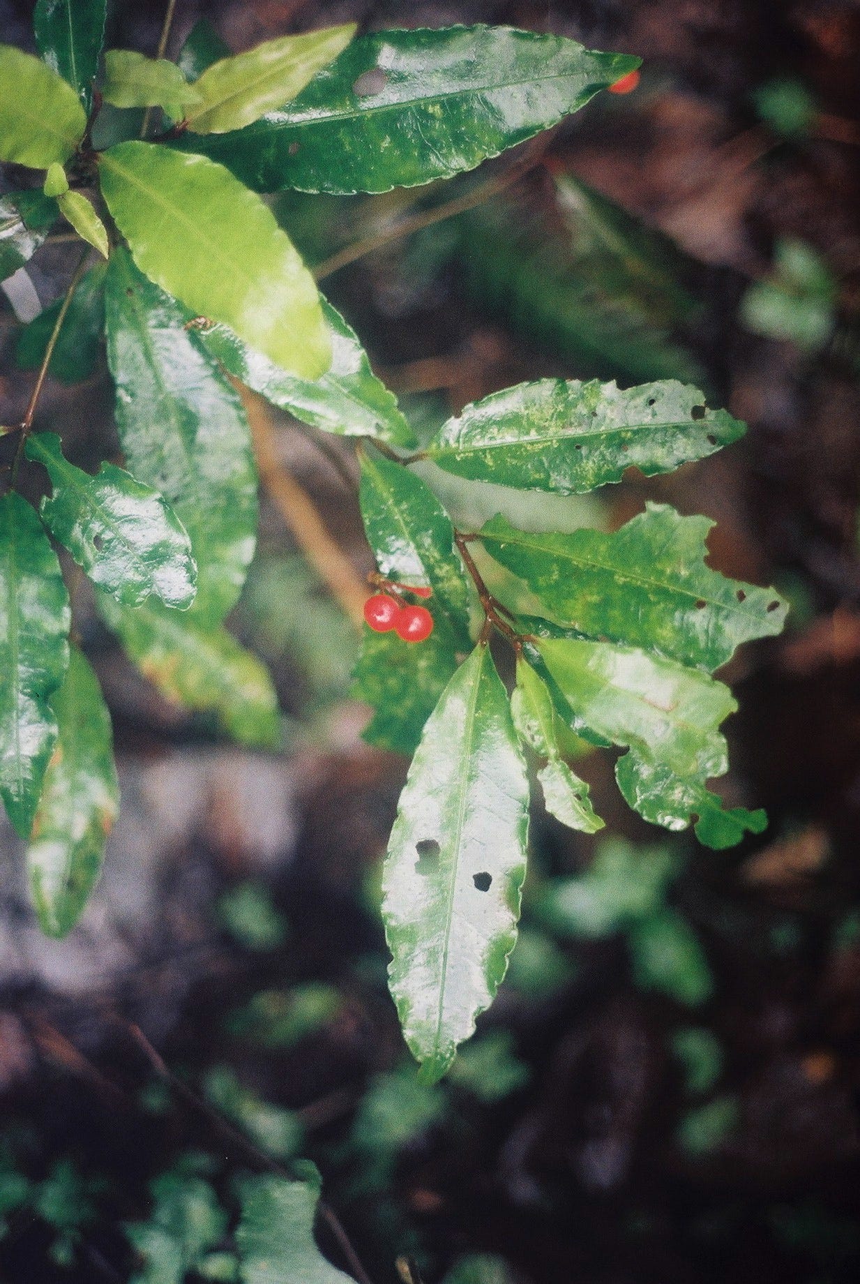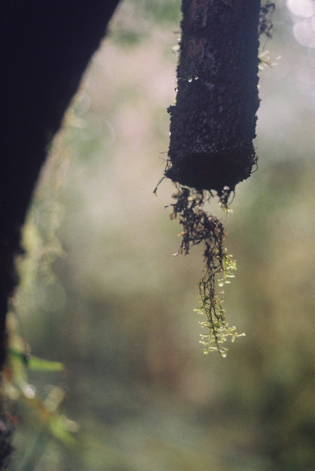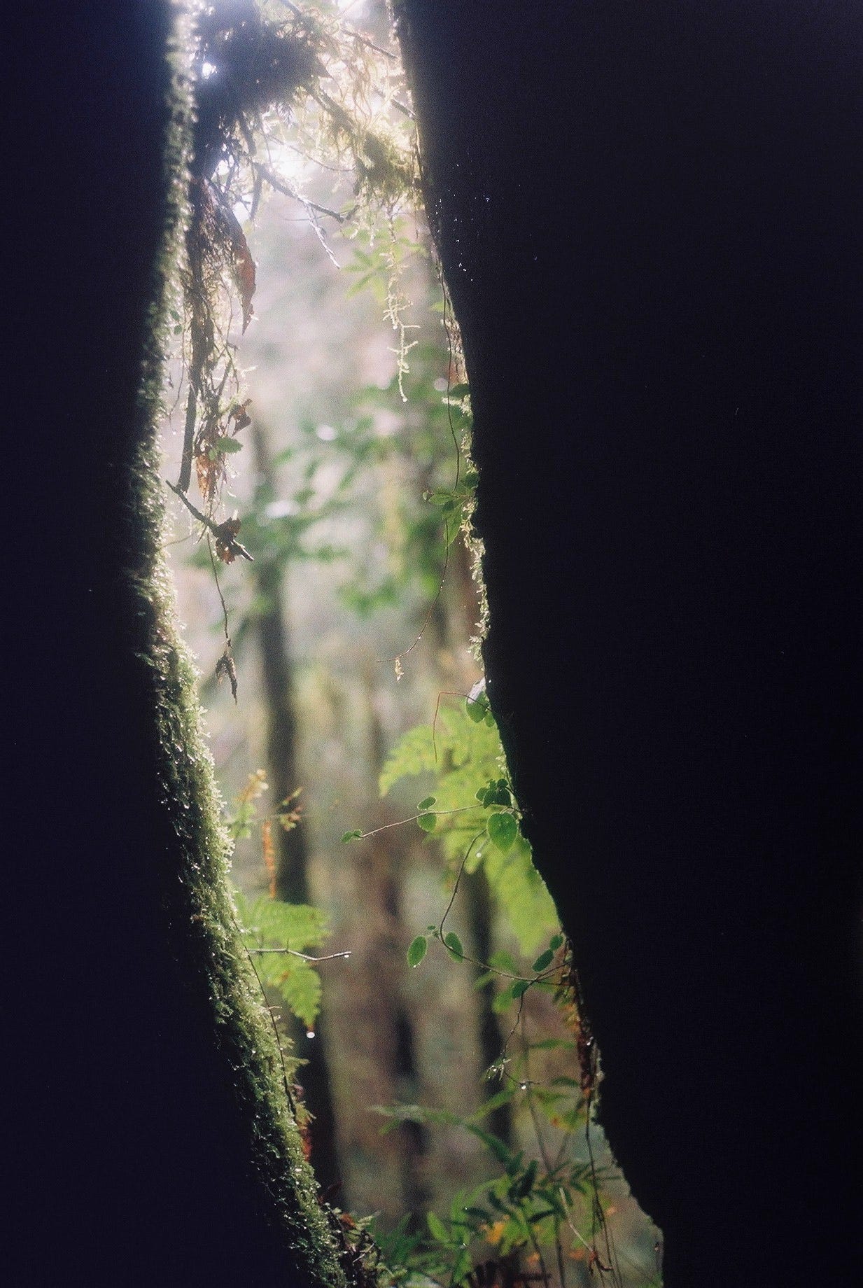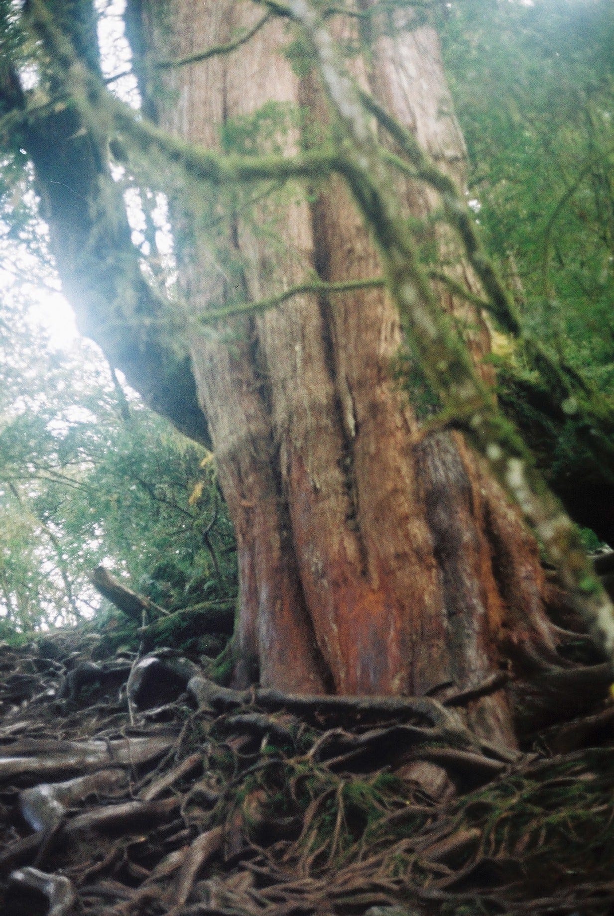 ▲通往加羅湖的巨木登山口 / 查了查資料應該是玉山假沙梨 / 樹上掛著滿滿的松蘿(Canon T50, Kodak gold 200)