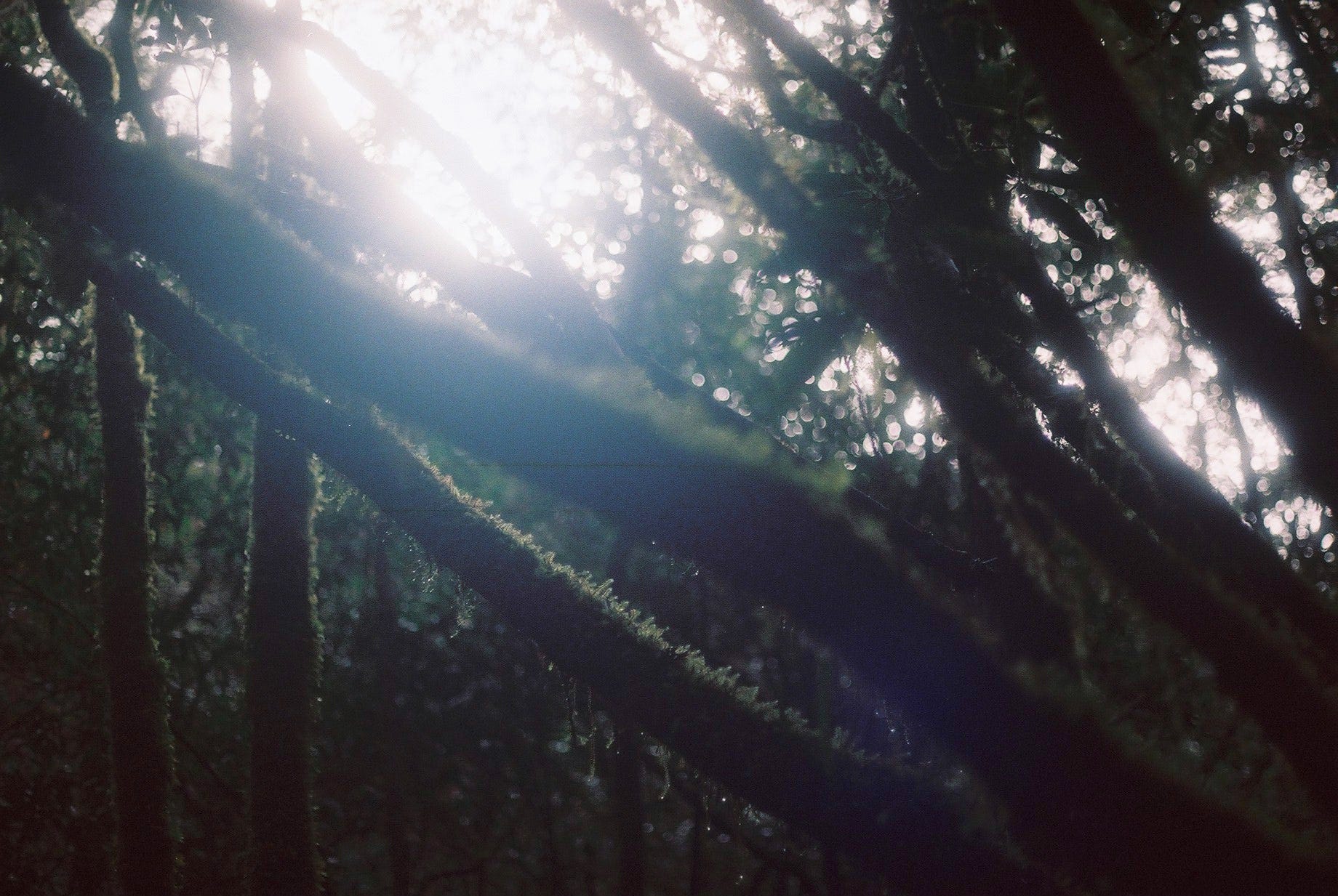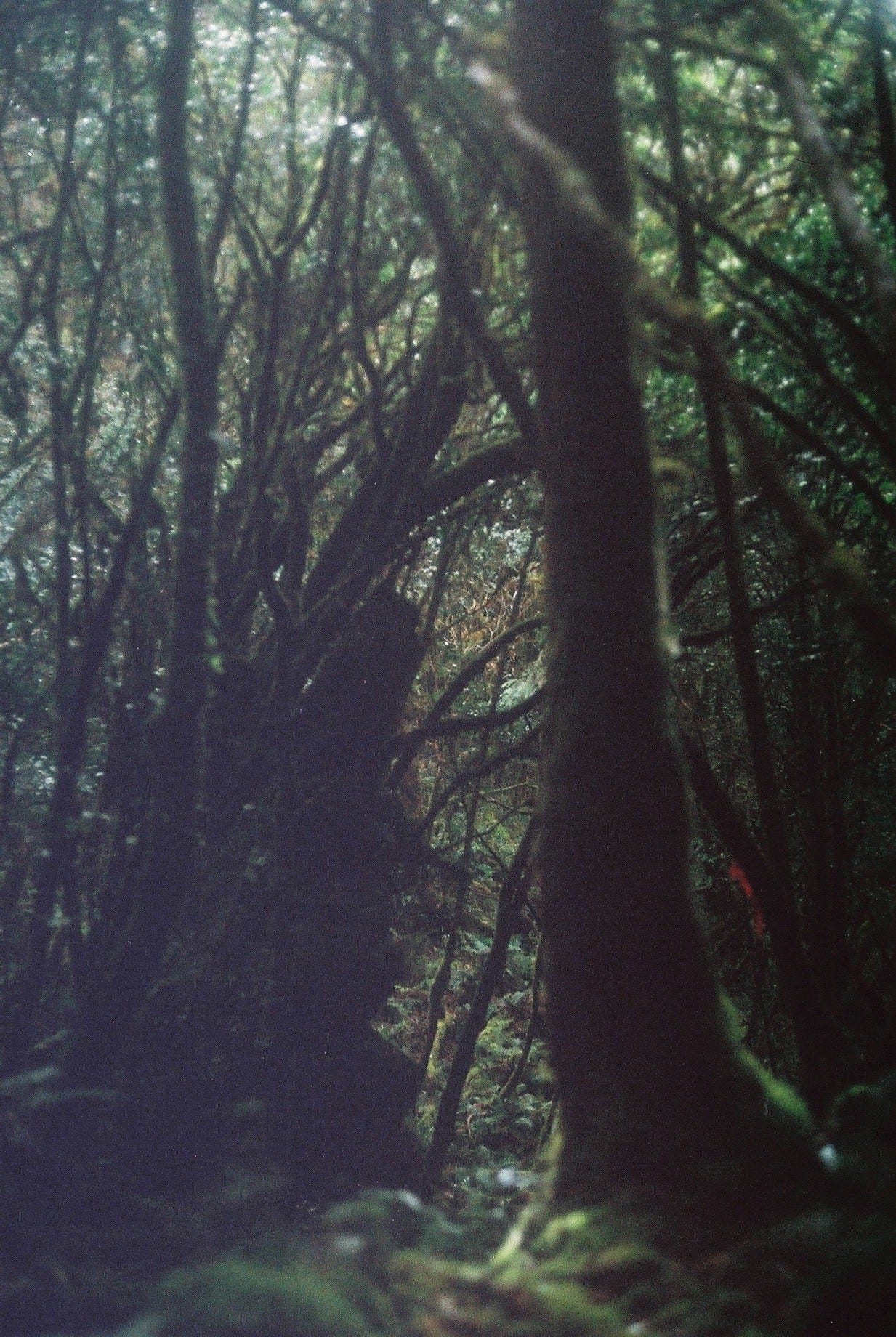 ▲陷落在森林之中走出路來,偶爾穿過林間灑落的光是最好的鼓勵 / 從嘉平營地回望來時路 (Canon T50, Kodak gold 200)