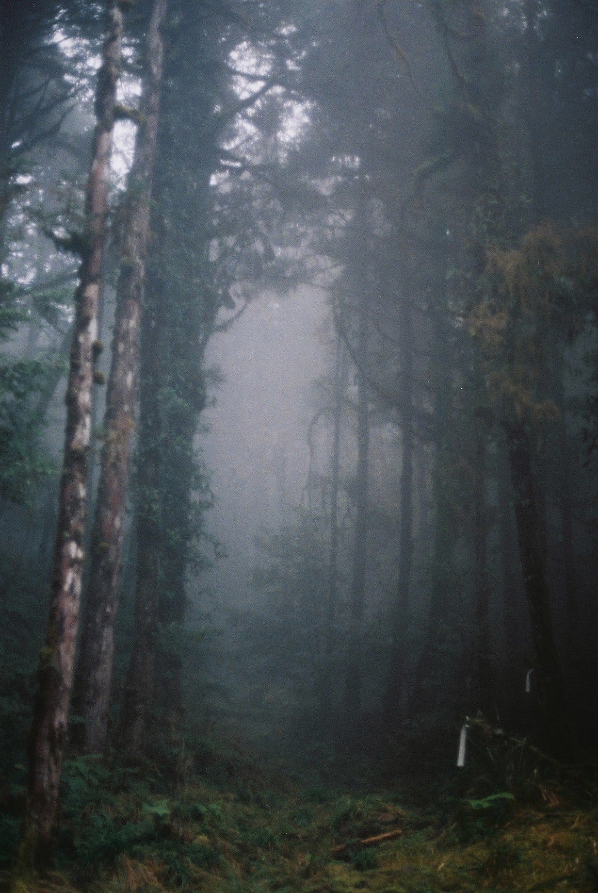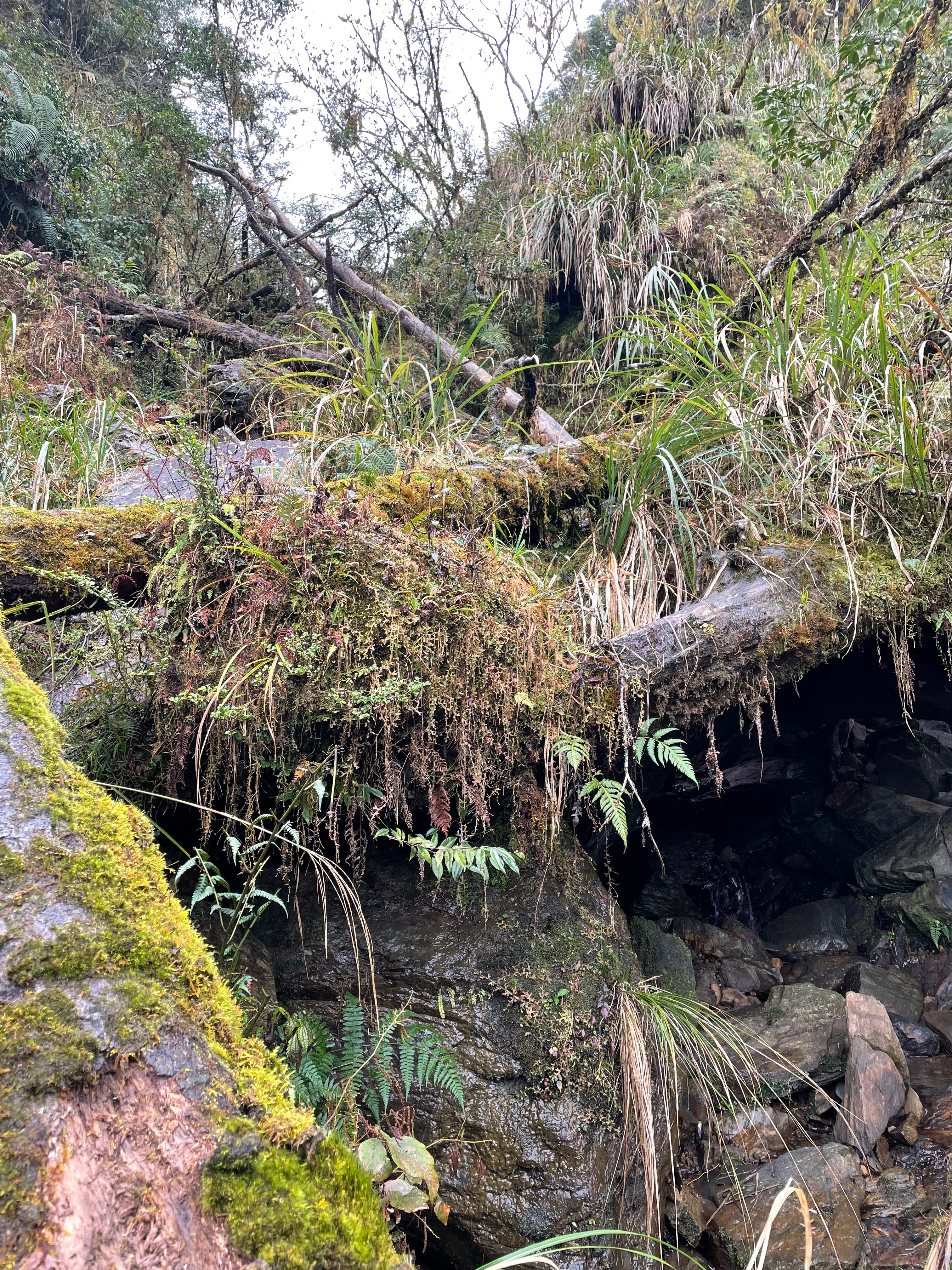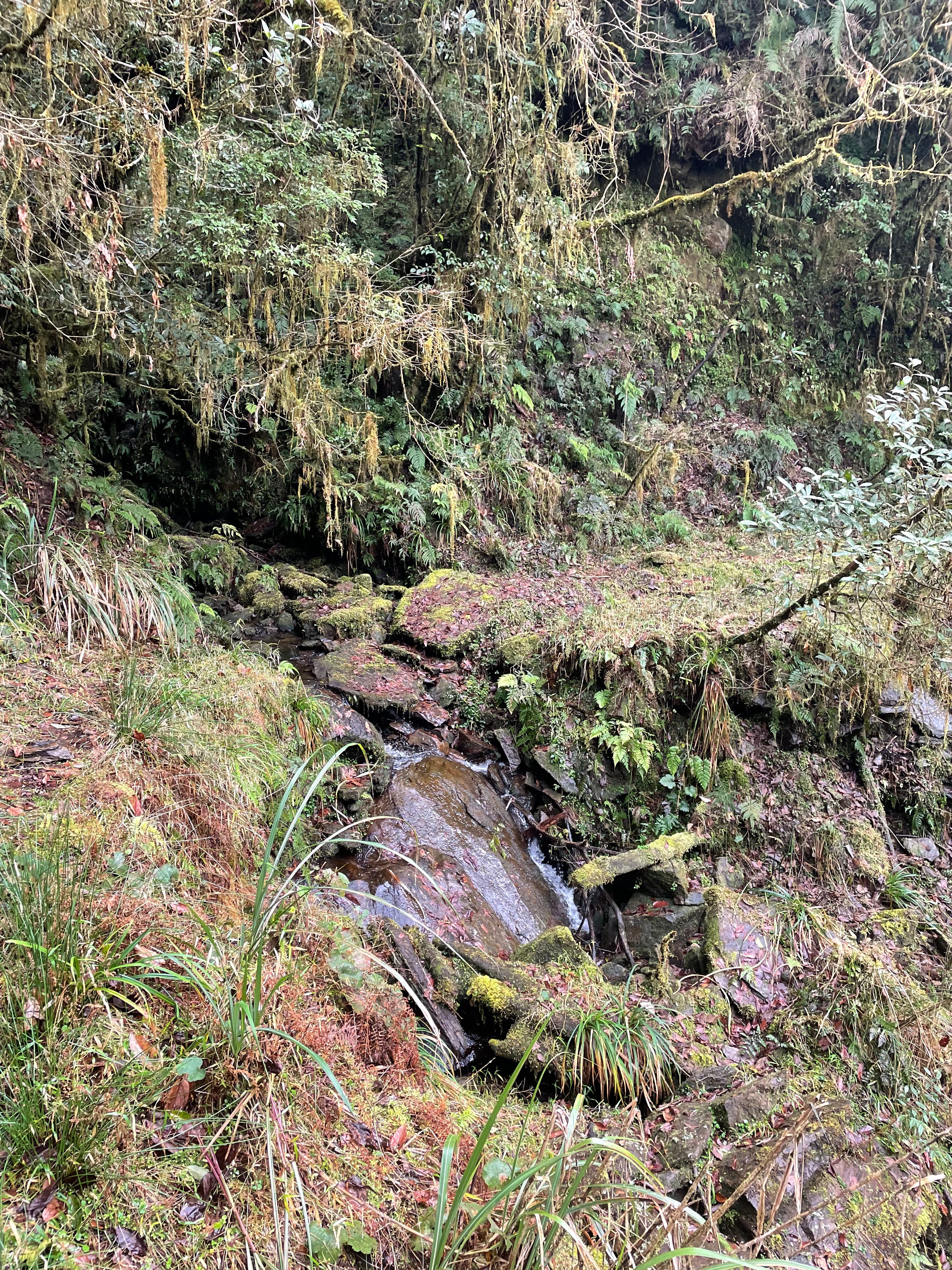 不太熟悉穿雨鞋下坡的我煞車煞到心累,最後大拇趾和小趾都又熱又痛,眼看雨勢越來越大,陷在樹叢裡感覺天色又暗得特別快,便一路心想:到底是要到了沒啊⋯