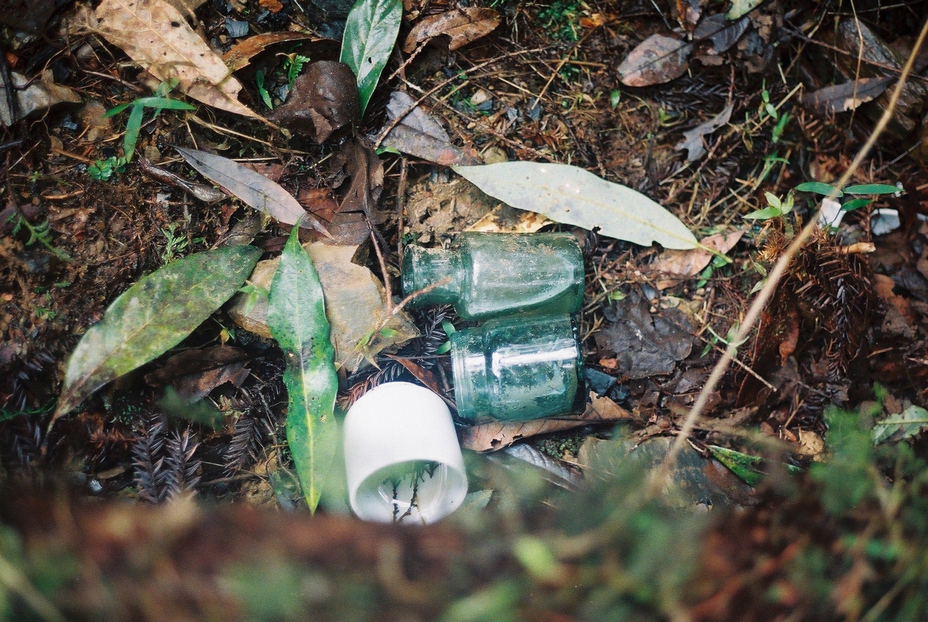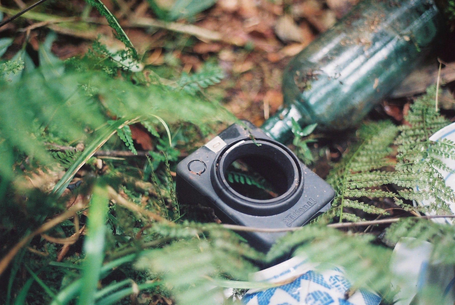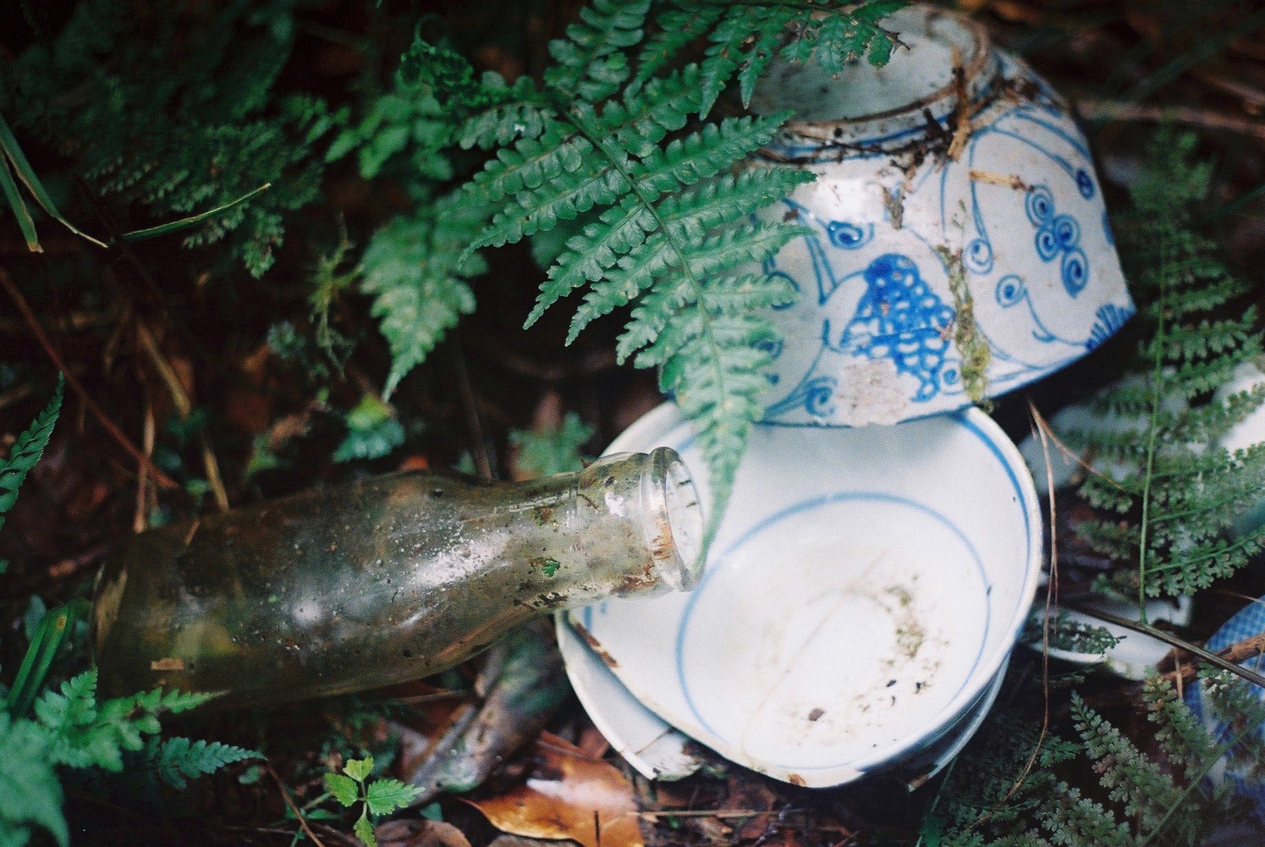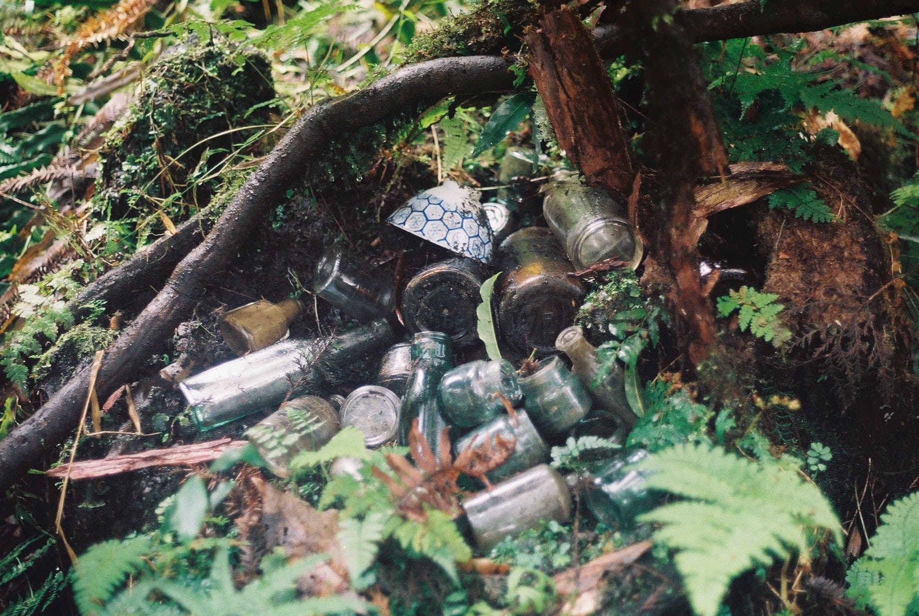 走下長階梯紮營後,便開始四處探索,我們從神社往下走了5層平台,每一層以石梯或者斜坡連接,除了瓷碗、玻璃瓶、鐵盆等器具,也可見到爐灶、地基、便座等,有些地方甚至可依稀看出當時的建築格局。