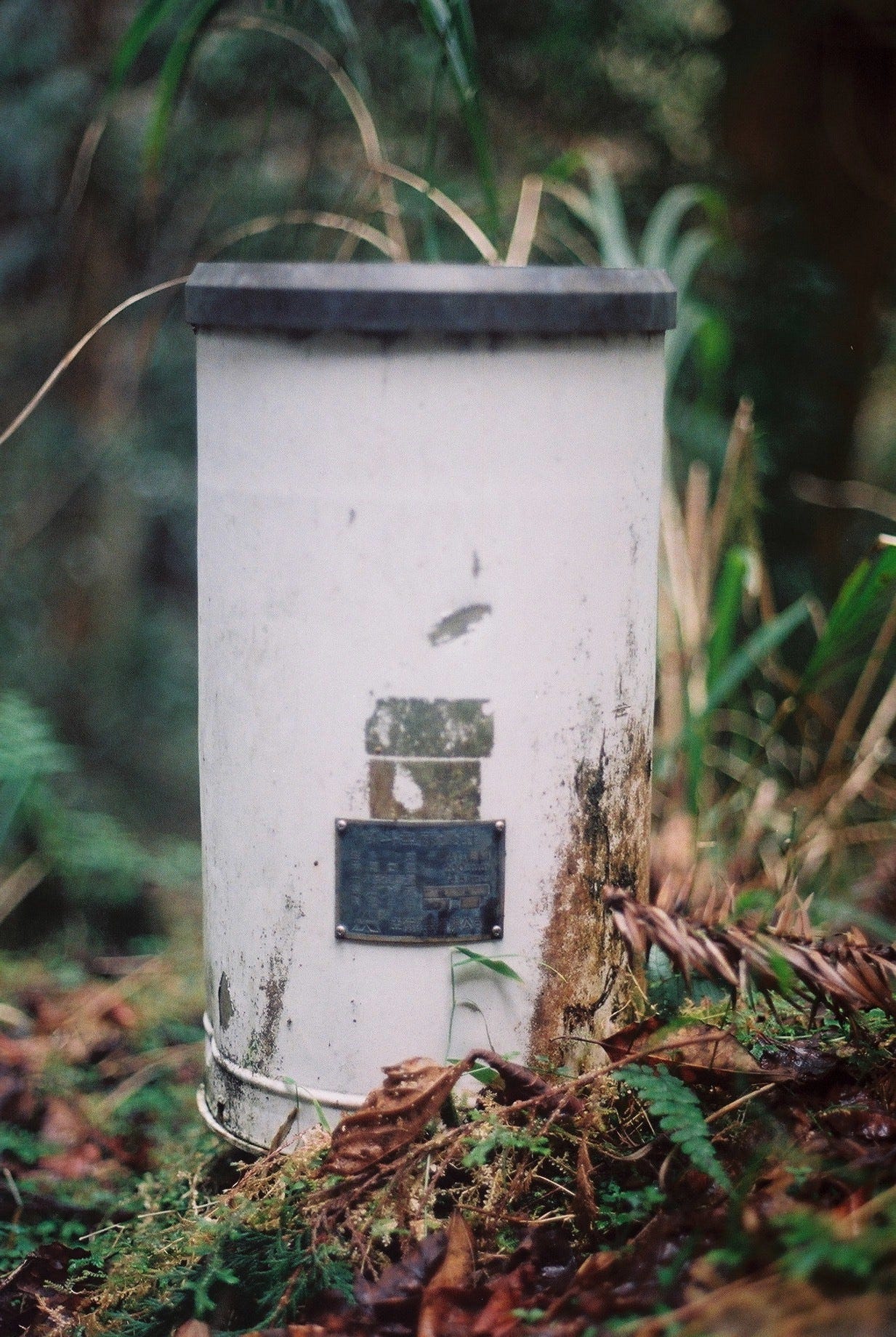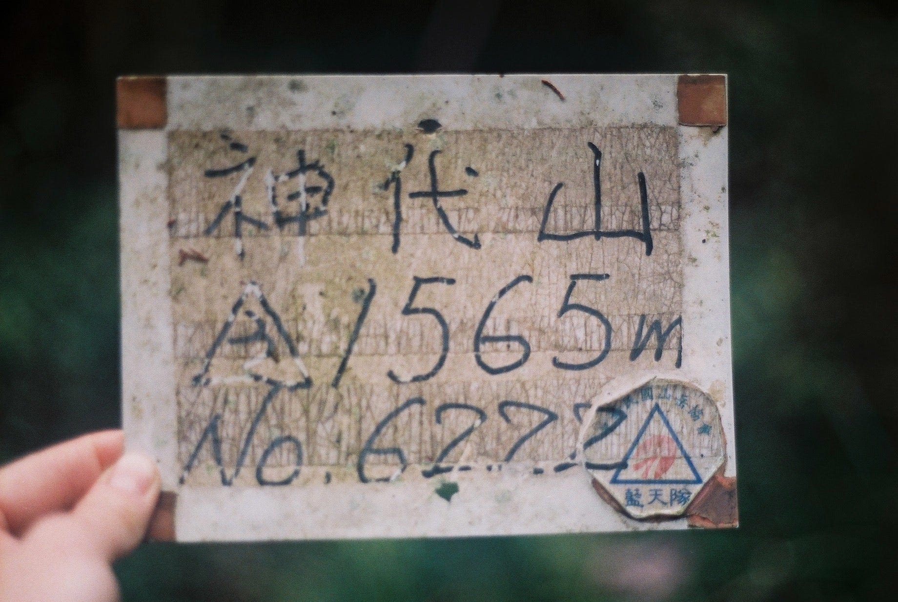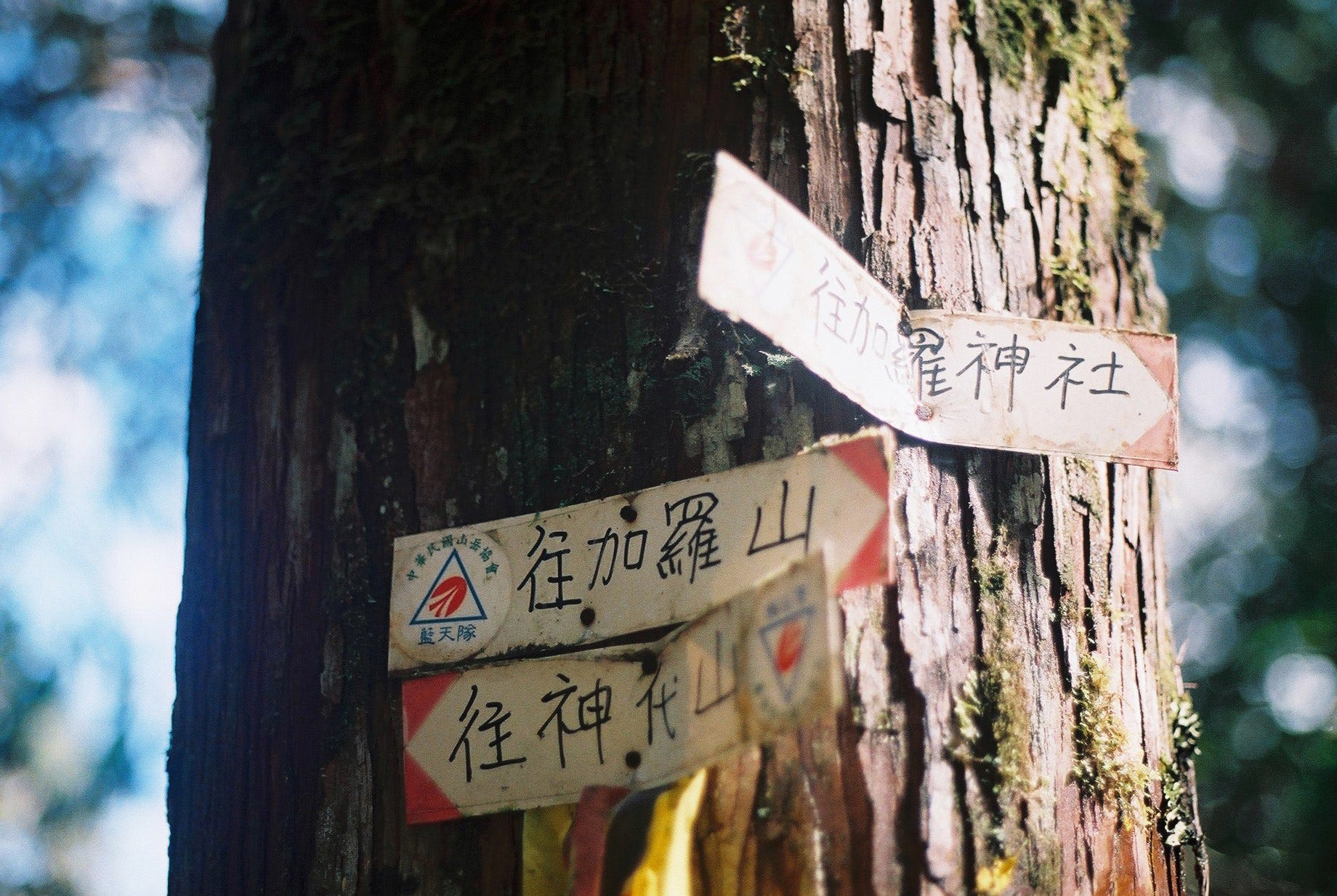 ▲離開神社返回林道的路上,見到透入林間的光,非常驚喜 / 林道旁的舊式雨量計,是通往日向台的入口 (Canon T50, Kodak gold 200)
