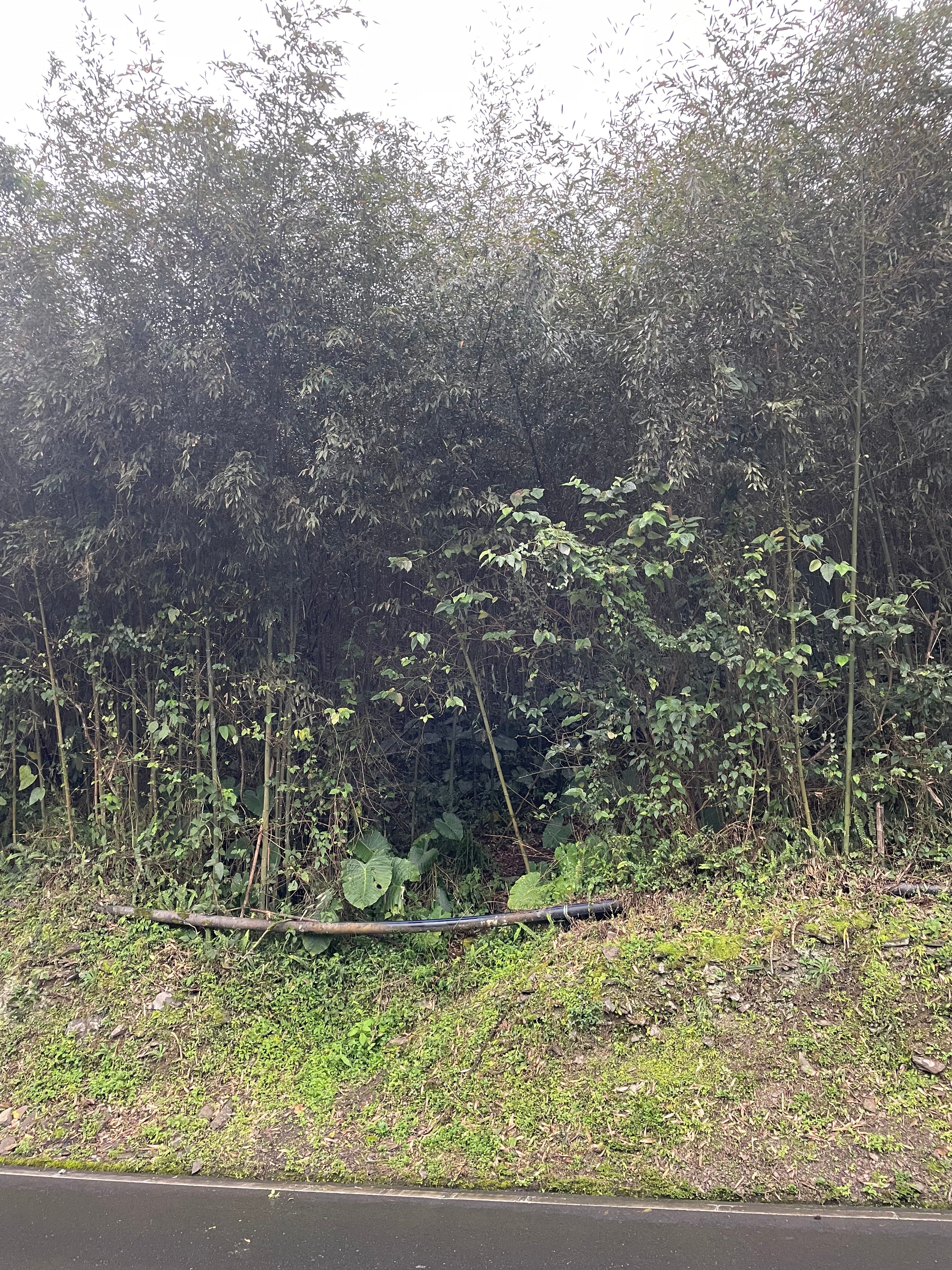 離開神木,續行了一段林道後,便開始從海拔1200公尺陡下到600公尺的留茂安登山口,途中會經過香蕉園和竹園,有蠻多得拉繩或抱著竹子下坡的地方,需要集中精神辨認出一些發黑而不能信任的竹子和香蕉樹,否則抓到一些軟趴趴的便會滑落特別長一段。