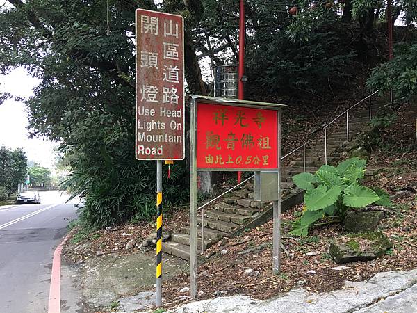 恭奉觀世音菩薩的祥光寺,登山口位於左側男廁旁的小徑。