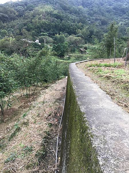 走在菜園旁的小路,旁邊有約150公分左右的斷層,小心行走。