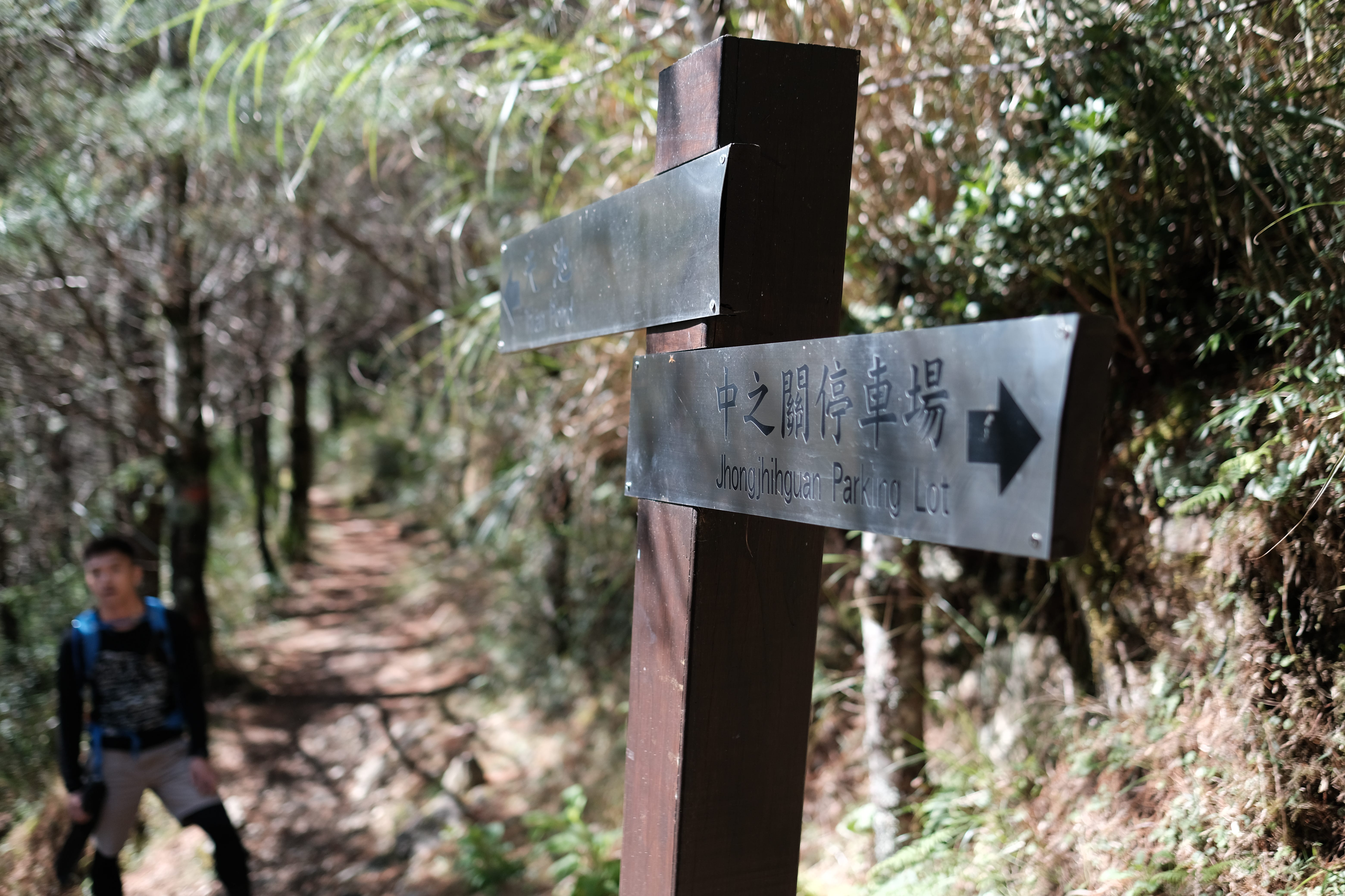 一開始在中之關優美林道行走,光與影的交雜好不浪漫,看到牌子之後叉路取左開始爬山。