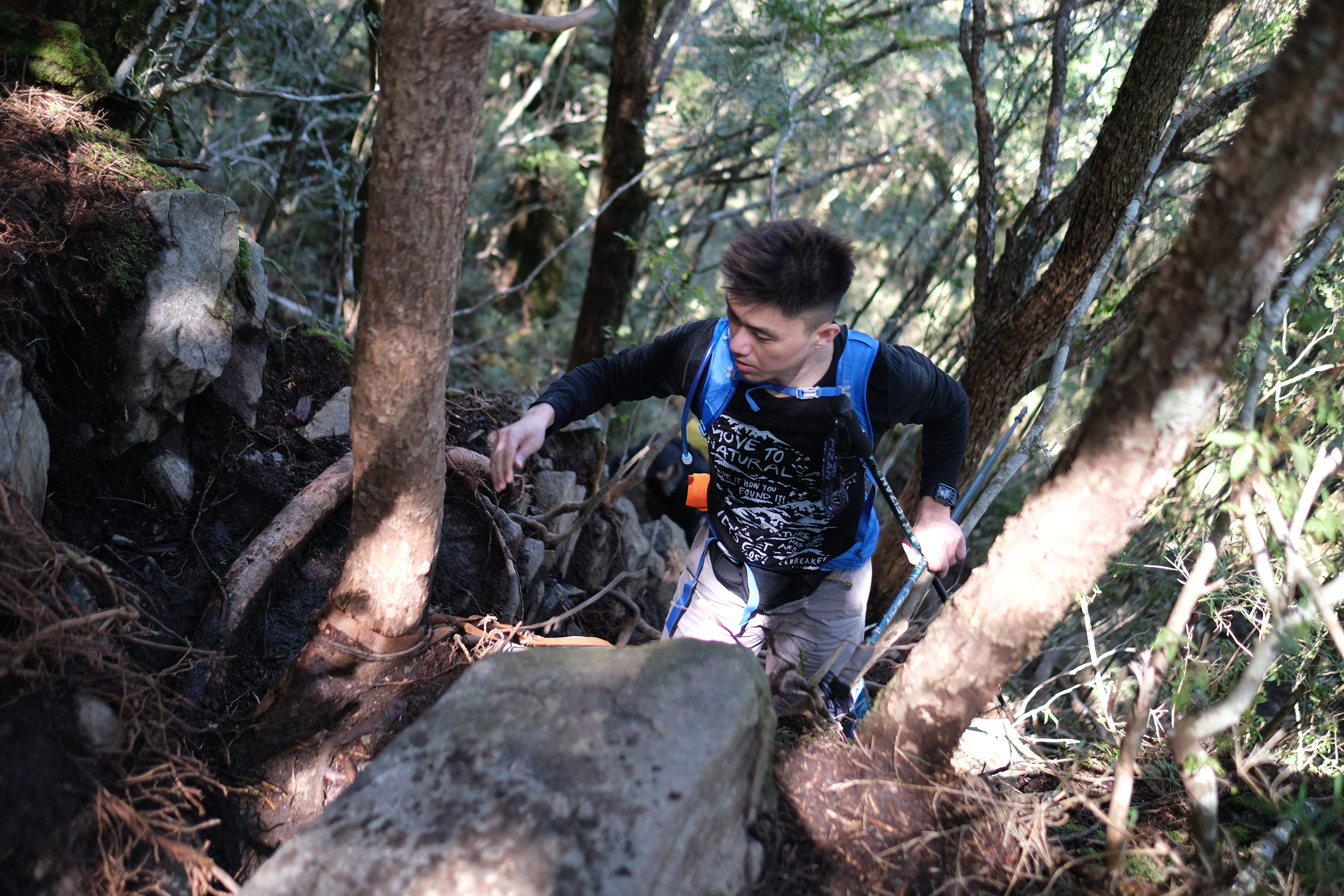 我們稱這個為屁屁段,因為幾乎是垂直上爬,抬頭就可以看到前方人的屁屁