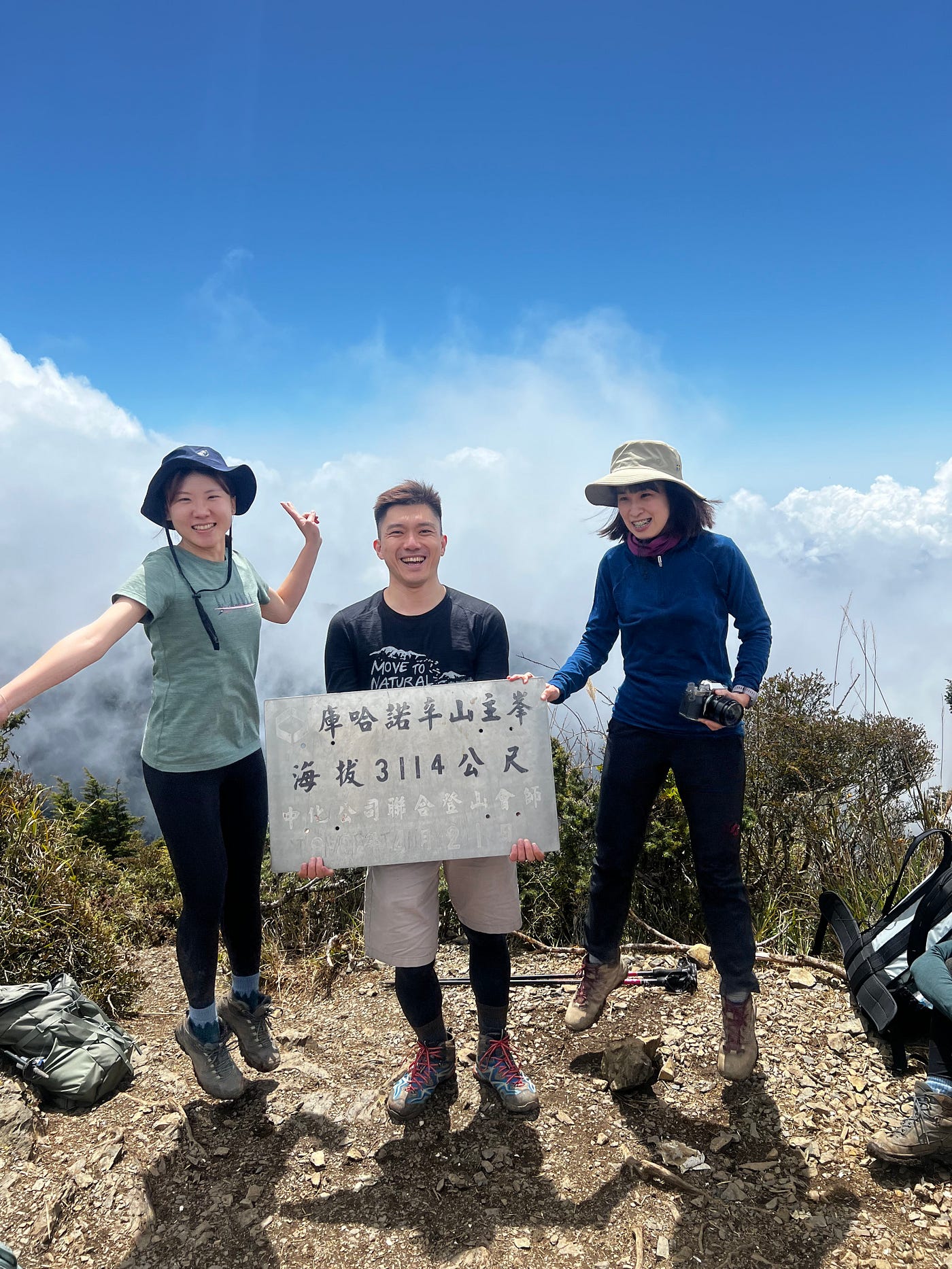 下山途中有個美德小故事(自己講),路上我看到一個超大紛紅色垃圾袋(裡面還有垃圾)躺在路中,和隊友們大罵誰這麼缺德但想說很輕就順手拿著下山,沿路遇到山友就問是不是你們掉的垃圾!