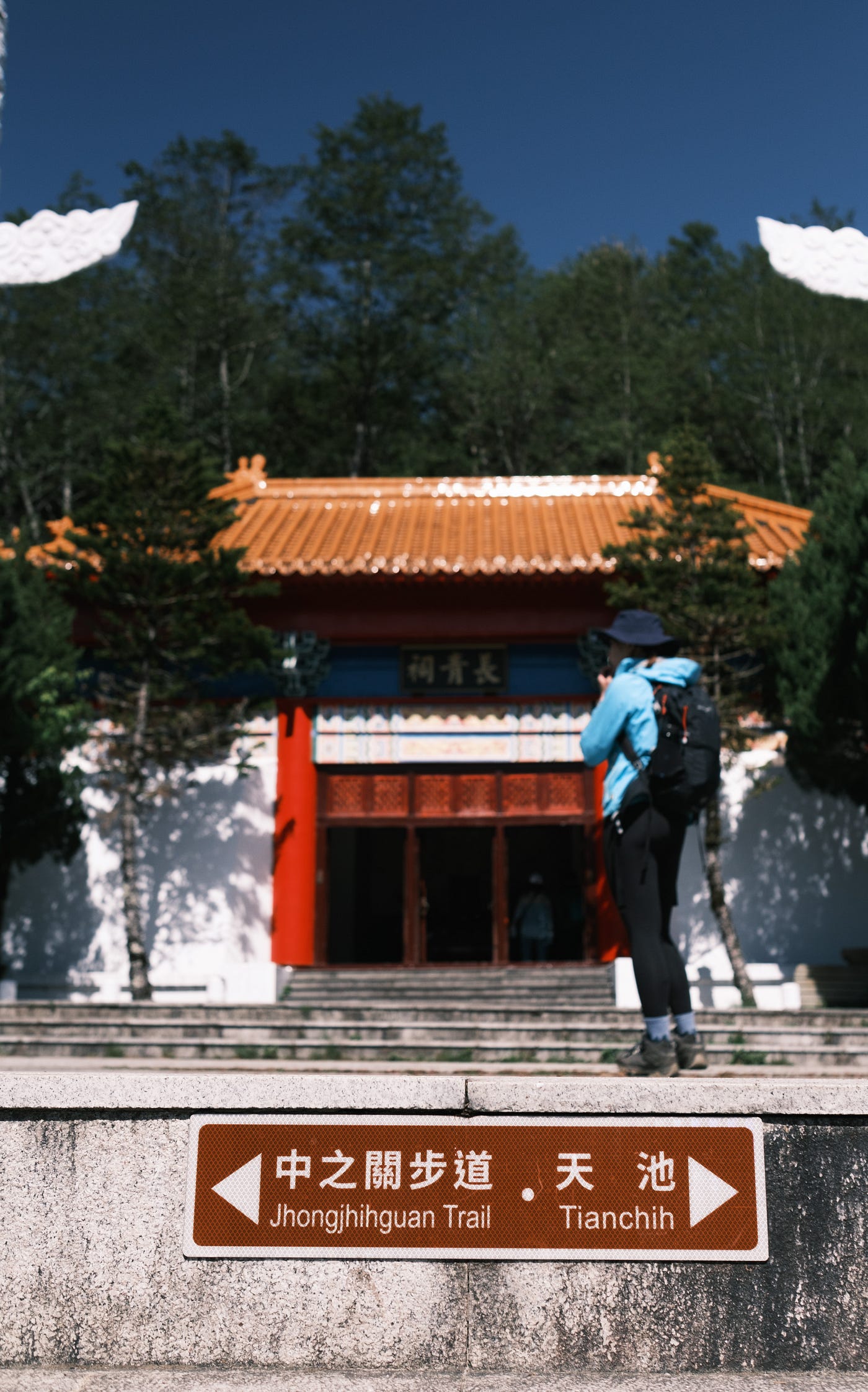 走上長青祠往天池前進