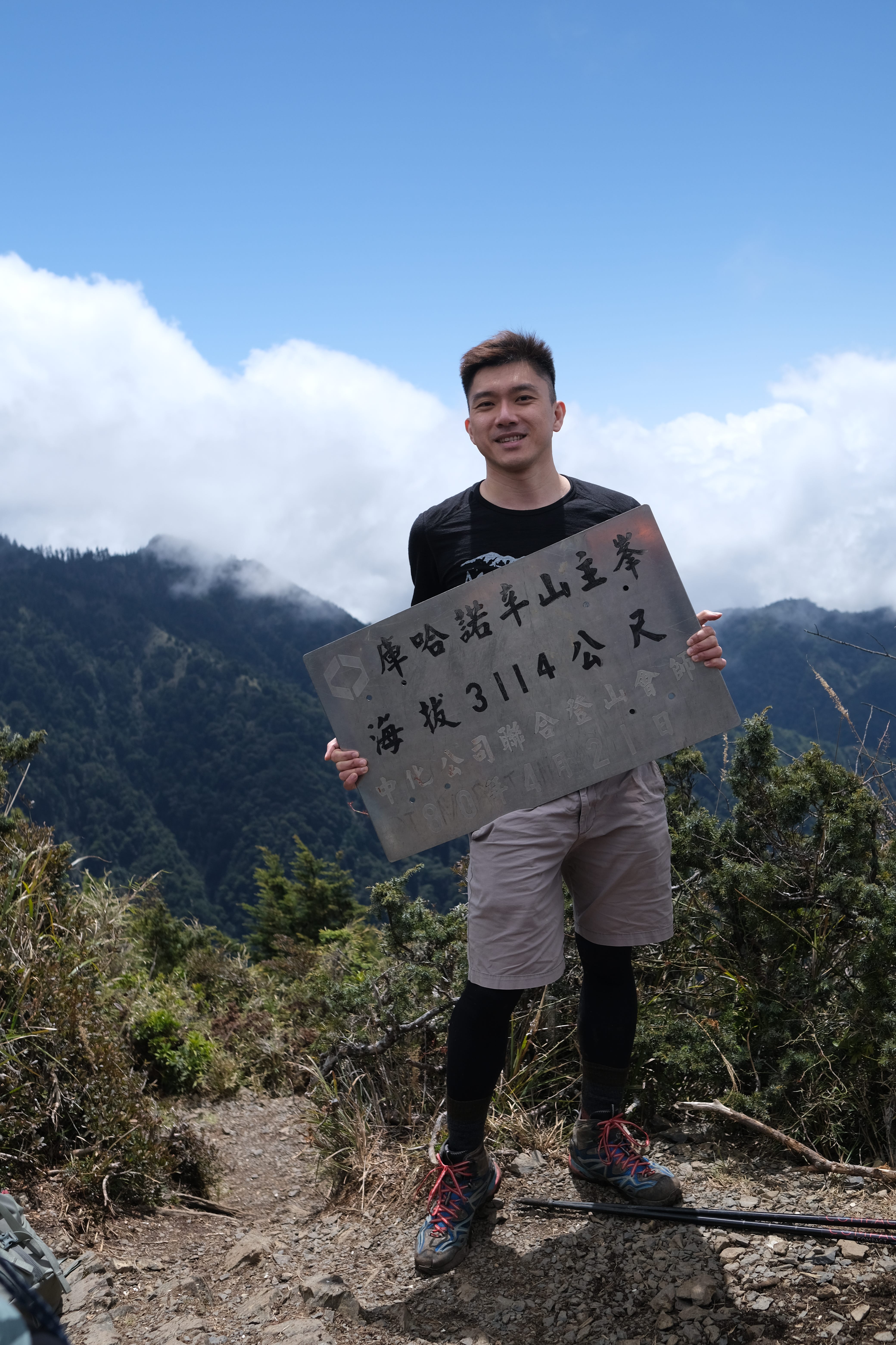 庫哈諾辛山海拔3116m,從天池(長青祠)進入,爬升約800多m(手錶顯示870m),總長約5.6K,非常的短,依我的腳程含休息拍照可5小時內往返,比上禮拜的尾寮山輕鬆許多,只是路途遙遠從台南開車要開三小時,加上南橫公路梅山至天池有時間管制,每週二&四不開放,僅開放9人座以下車輛及機車當日8:00~15:00進出,也就是三點前一定要下山把車開走,不然就會被拍照開罰單喔。