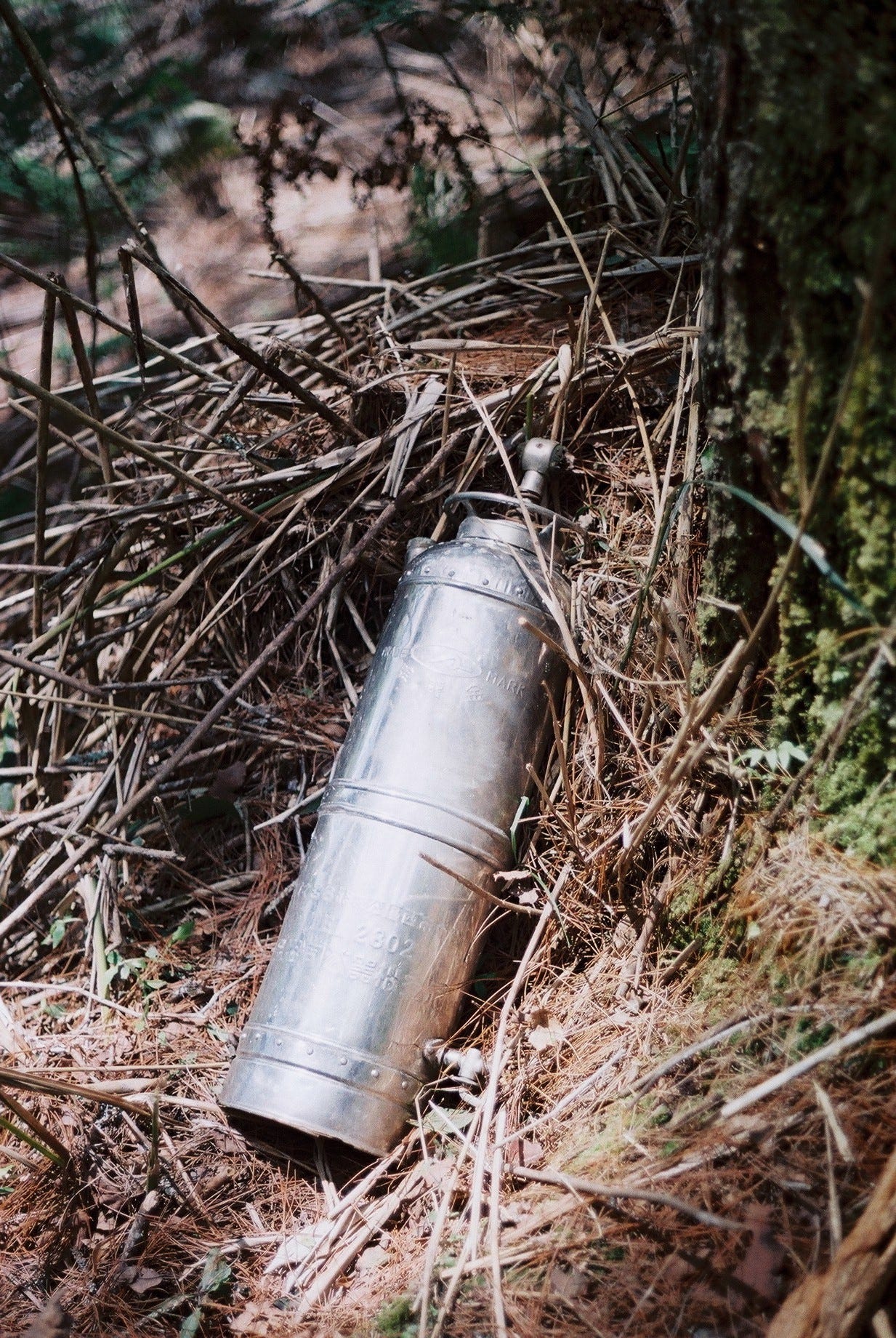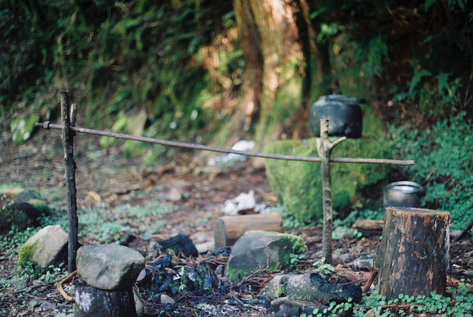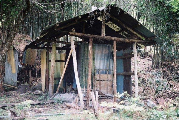 | (左) 轉稜獵寮 / (右) 路上的鋼瓶,附近有一個小營地 | ||
