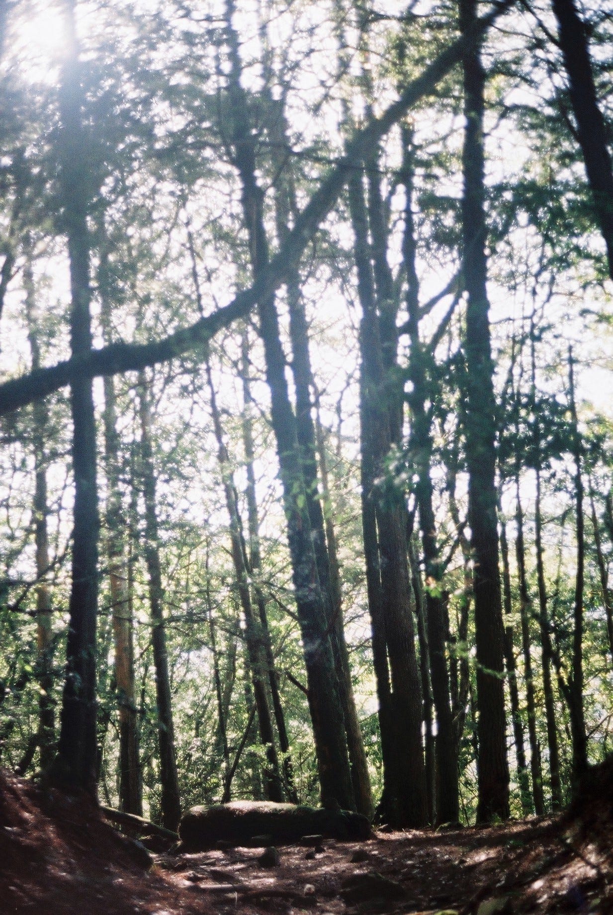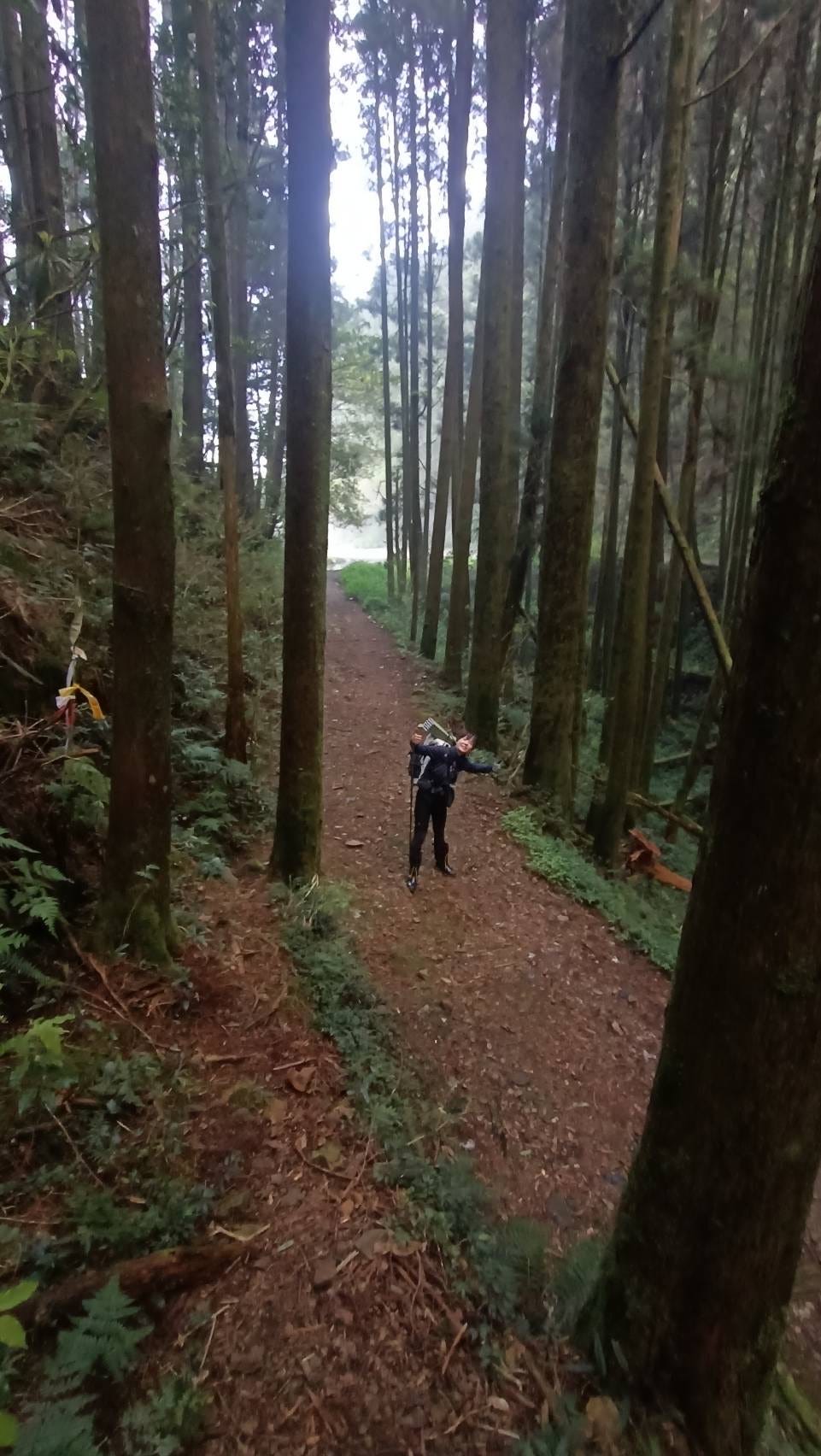 接下來便一路走稜線,中間會經過幾處寬廣的鞍部,午後的森林雲霧繚繞,走起來蠻舒適的。