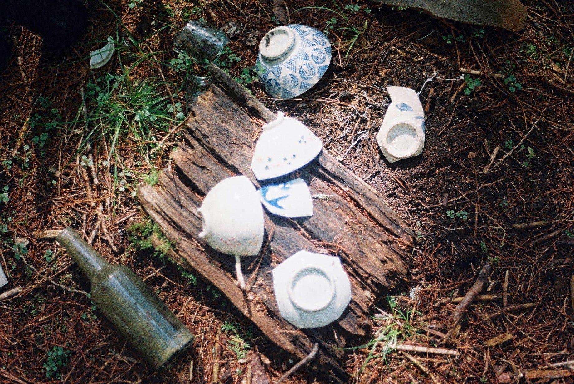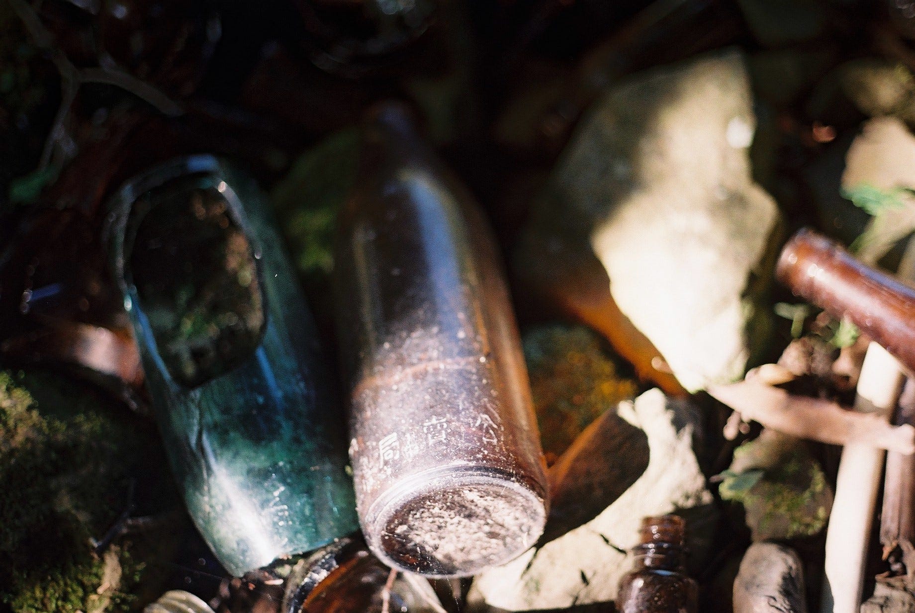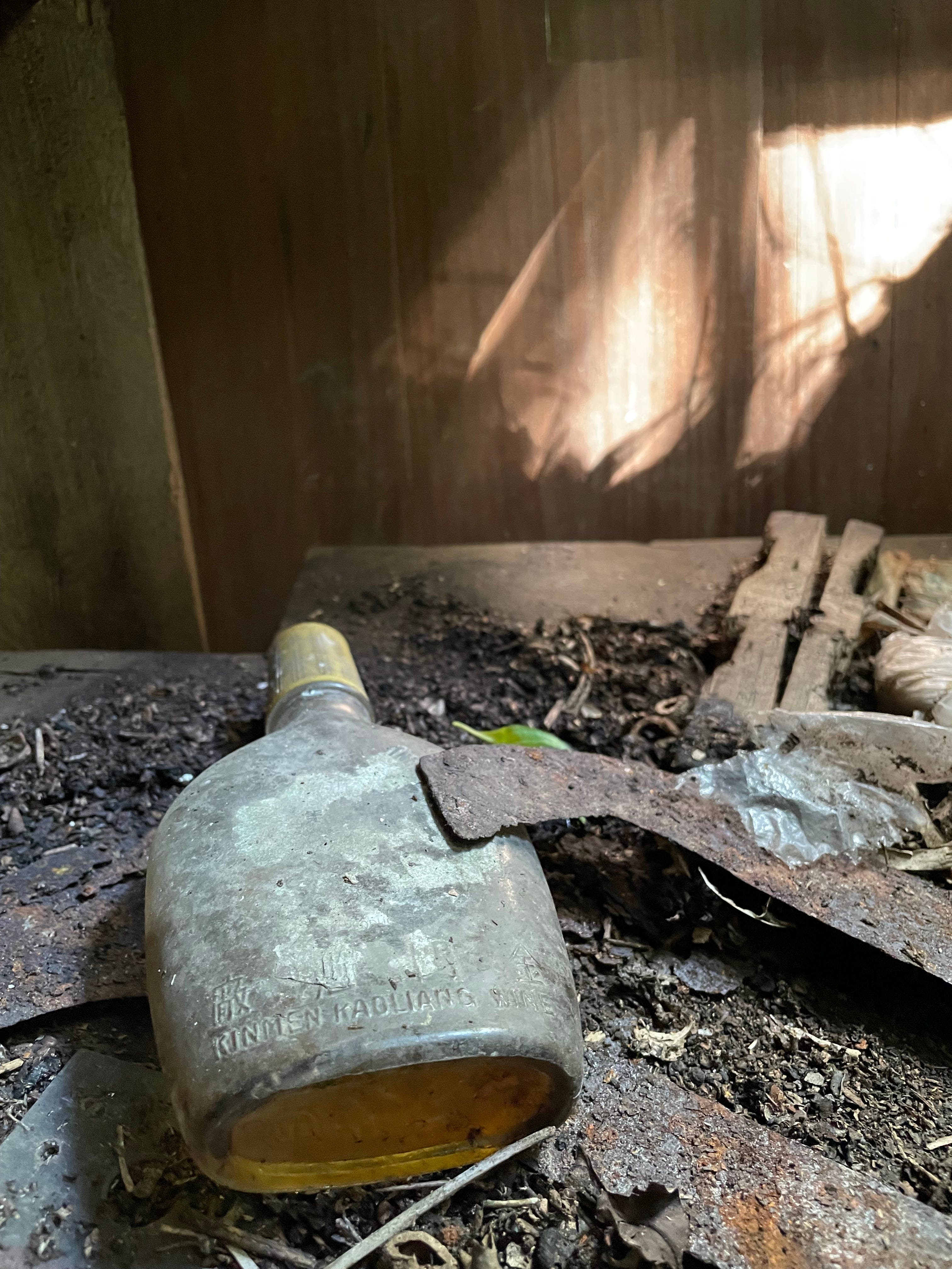 我們花了些時間四處探索,只發現一小段鐵軌,其餘的鐵路和建築痕跡早已不復見。地上散落著瓷碗、酒瓶(SAKURA BEER/台灣菸酒公賣局)、礙子、茶壺及爐,較特別的是還見到黑人牙膏、白熊脂潤膚霜罐和 ‘SCOTT’S EMULSION’ 鱈魚肝油與萊姆及蘇打的乳液玻璃瓶(COD LIVER OIL WITH LIME & SODA GLASS BOTTLE)。