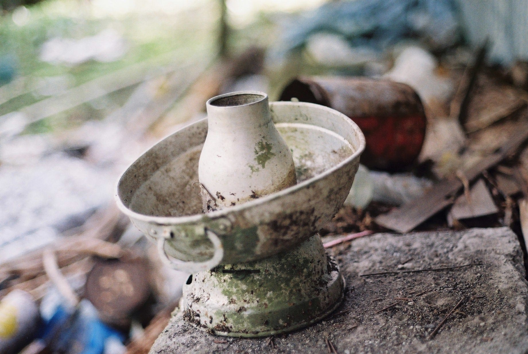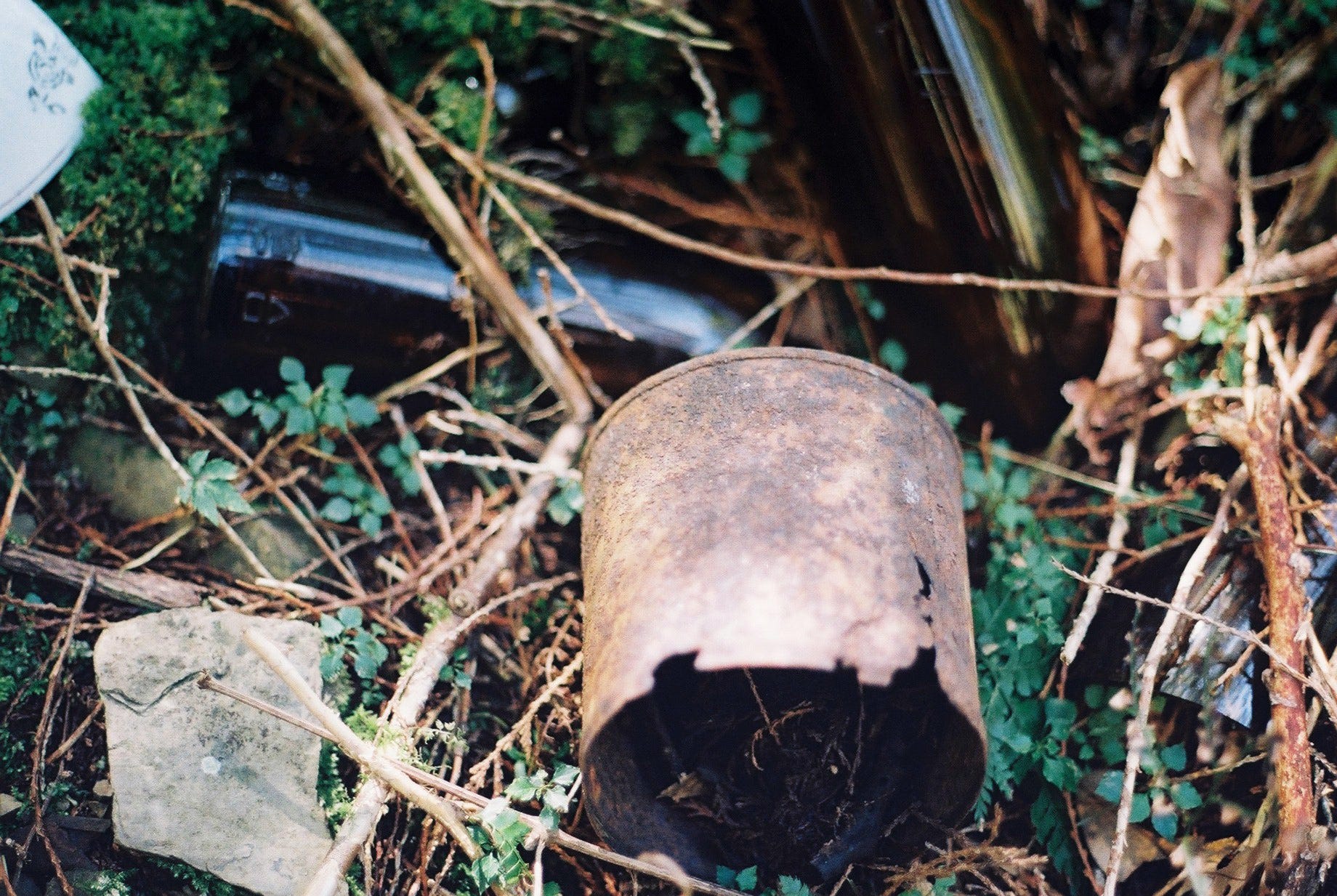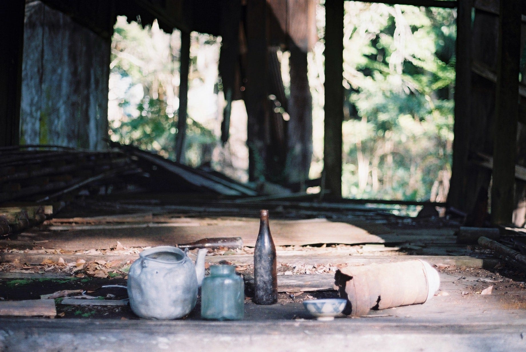 我們花了些時間四處探索,只發現一小段鐵軌,其餘的鐵路和建築痕跡早已不復見。地上散落著瓷碗、酒瓶(SAKURA BEER/台灣菸酒公賣局)、礙子、茶壺及爐,較特別的是還見到黑人牙膏、白熊脂潤膚霜罐和 ‘SCOTT’S EMULSION’ 鱈魚肝油與萊姆及蘇打的乳液玻璃瓶(COD LIVER OIL WITH LIME & SODA GLASS BOTTLE)。