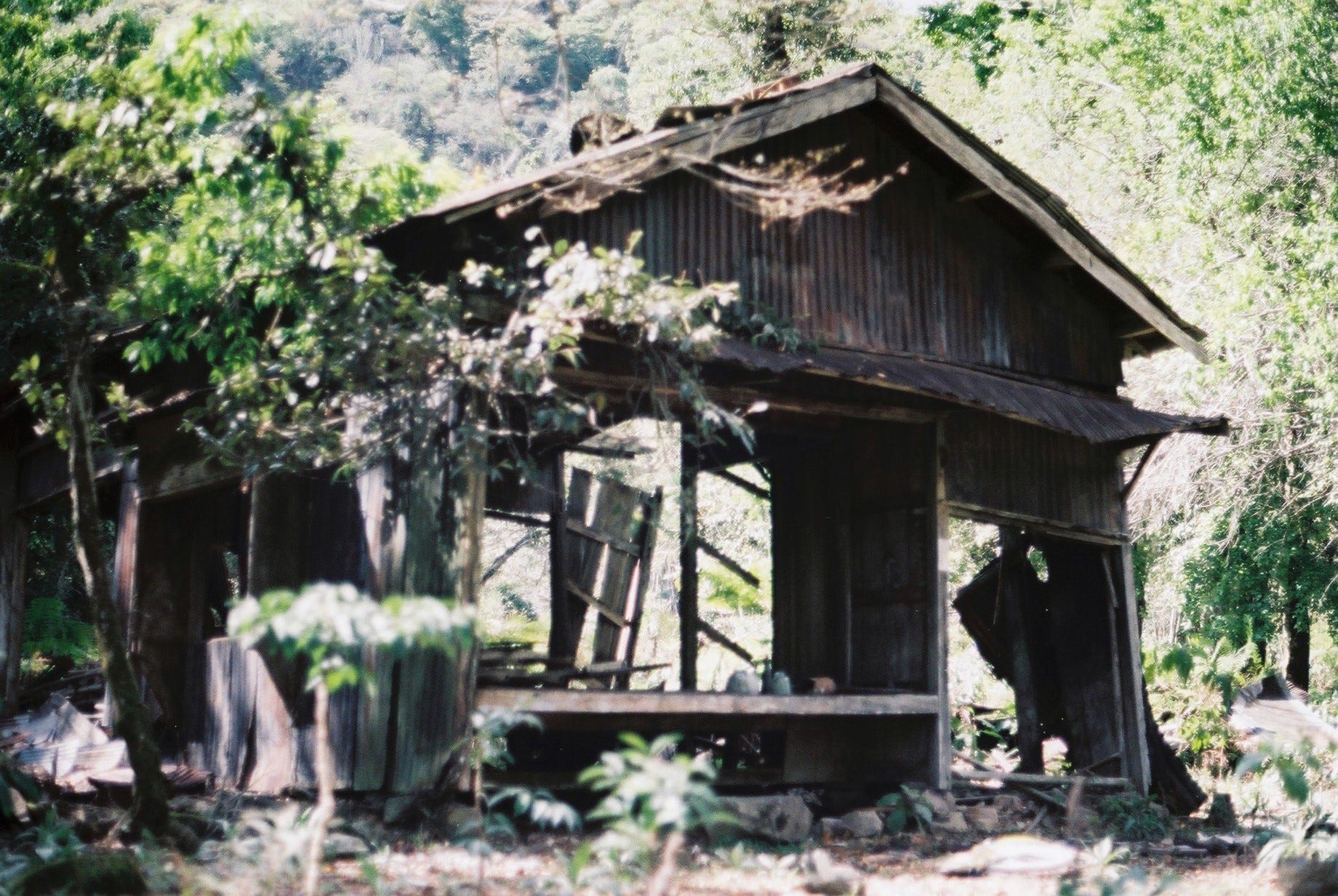 依循著廢棄的霞山鐵道,走入群山之間的小台地,焗腦大鍋、愛玉子架、衛生所、村長辦公室和平房分佈四周,部分屋宇傾頹,住宅內的各式生活用品散落,牆上泛黃的月曆和報紙寫著民國61年…