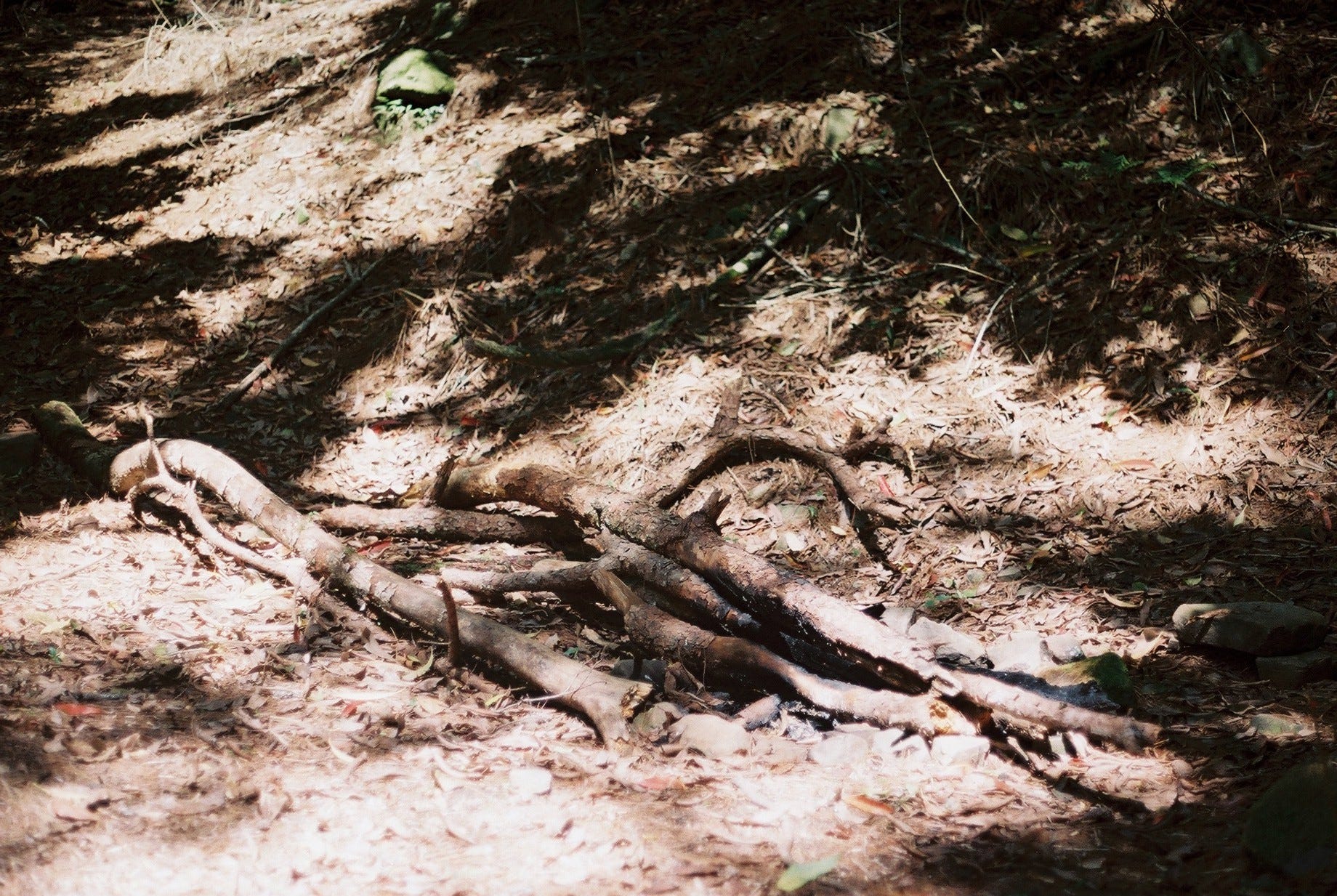 11:53 離別樹、大樹根、燒炭窯。附近是一個蠻寬廣的鞍部,可由此處接回霞山傳統路,接下來除了一段懸空鐵道之外都平坦好走。