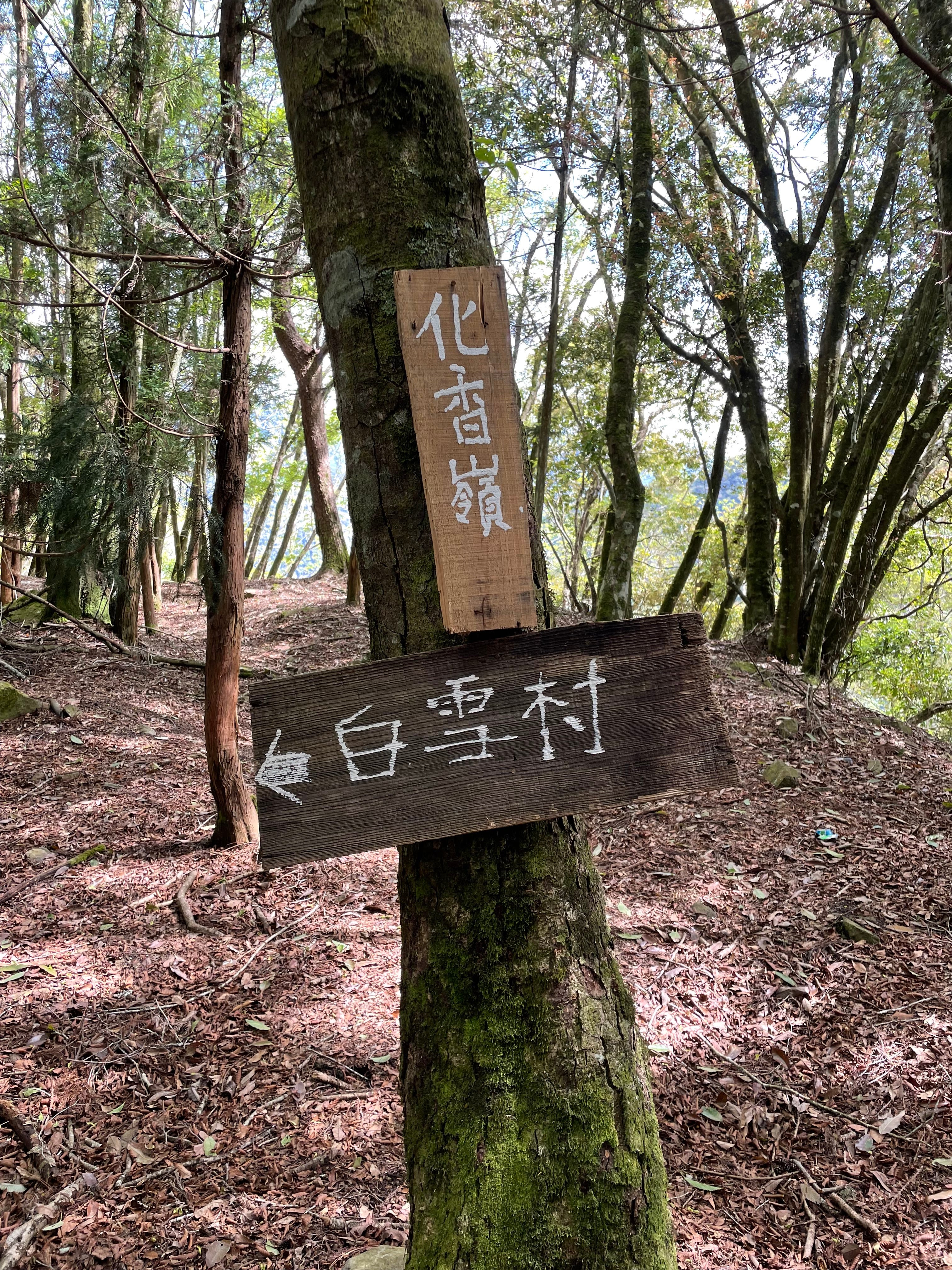 13:45 白雪村、化香嶺路牌,由此再續行約20分鐘便可抵達白雪村。
