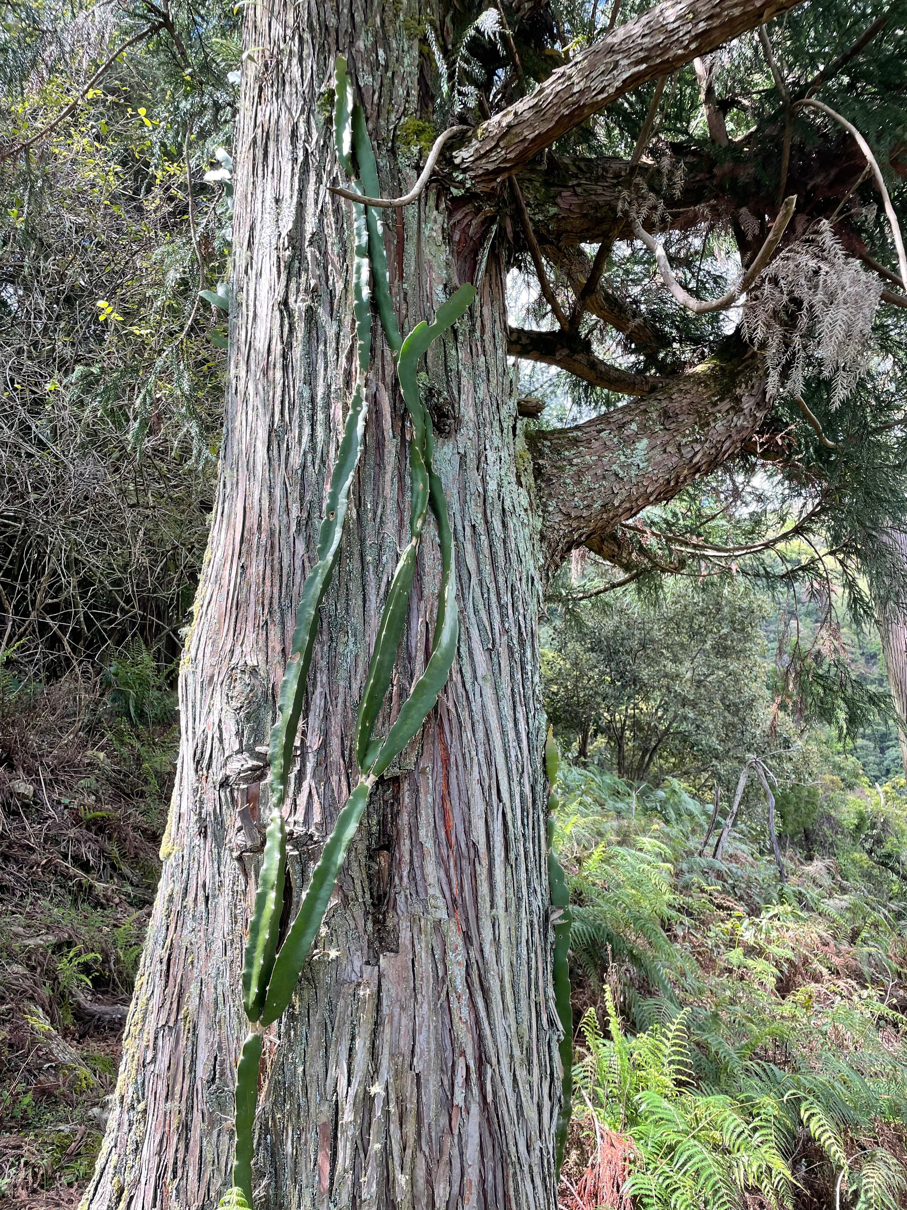 這段路跡也算是明顯,其中有幾處可見到攀附在樹上的火龍果,雖然現在已少有人出入,但由此仍可看出人類出沒所留下的痕跡。