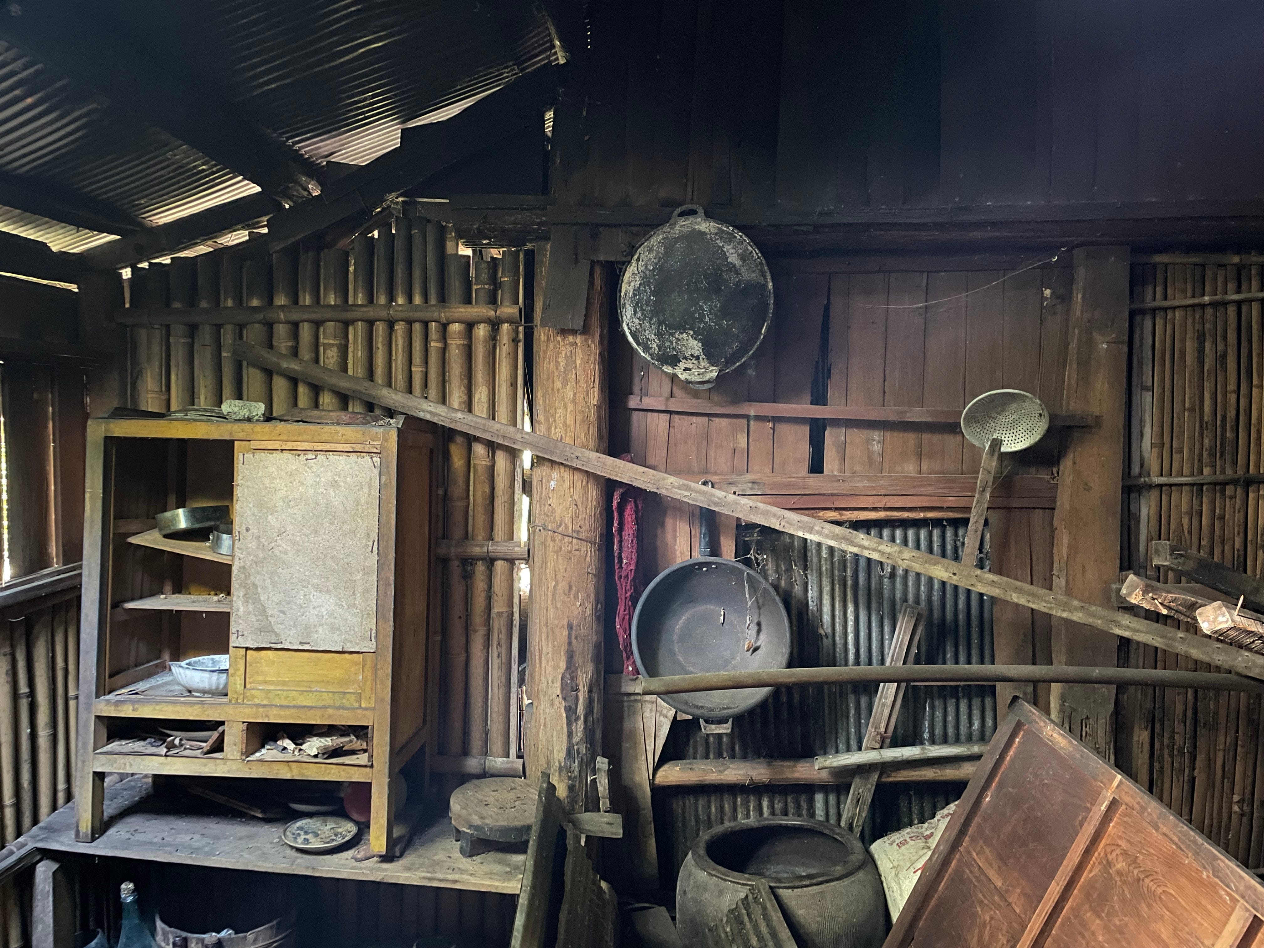 建築物保留得大致完整,右側的門口有幾副獸骨,一進門的檯子上擺放著一些鍋碗,並吊著動物的鬃毛,內部的房間有床架,橫樑上掛著被子,看起來像是獵人生活的痕跡。