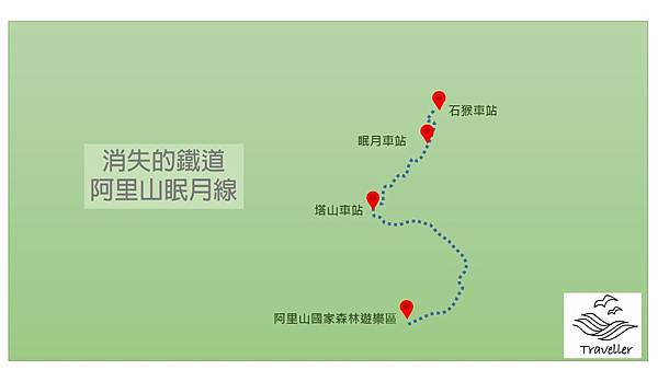 0600起床 → 0650出發→ 0830阿里山遊樂區 → 0900出發 → 1130塔山車站 → 1400眠月車站 → 1500石猴車站