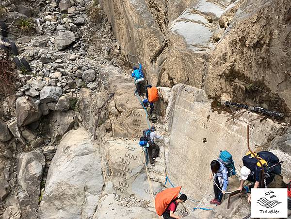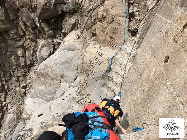 來到第一個攀繩區,各種鋼筋繩索,大家小心的踩著每一步,安全通過。還好今天天氣不錯,石頭鋼筋都不滑,很安全的通過了!