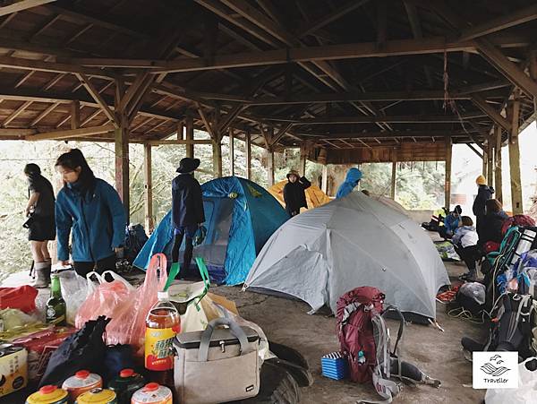 有屋檐遮風避雨,還有桌子椅子,在這邊紮營也太幸福了吧!