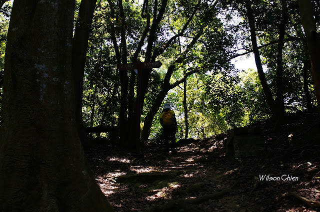 來到登山口前的土地公處往左走鞍部上爬路線往右是往妙覺禪寺與稜線的上爬路線不取